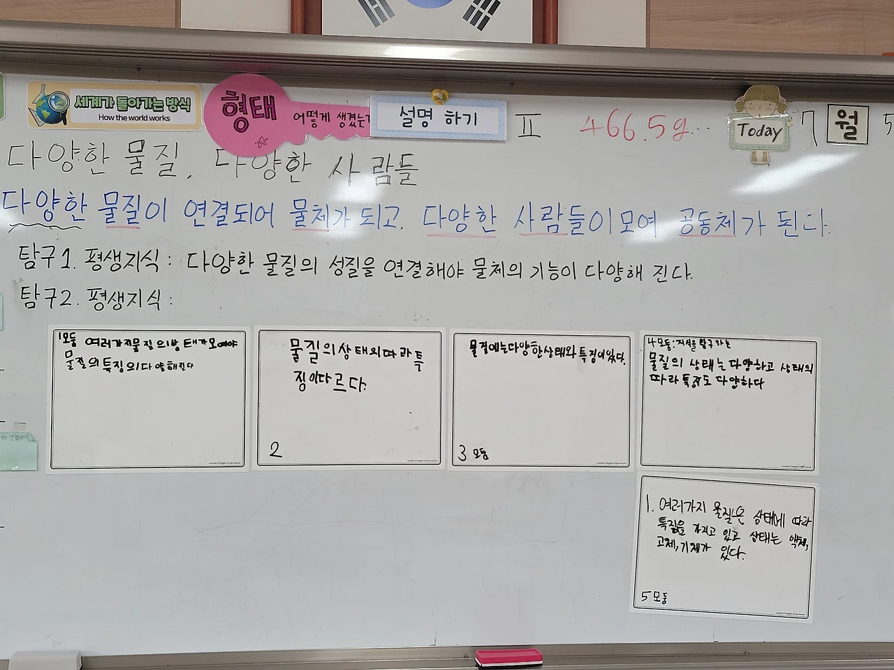 그러고 나서는 이제 이번 두 번째 탐구의 설명하기 단계로 들어갑니다. 즉 아이들과 탐구 2의 평생 지식을 만듭니다.