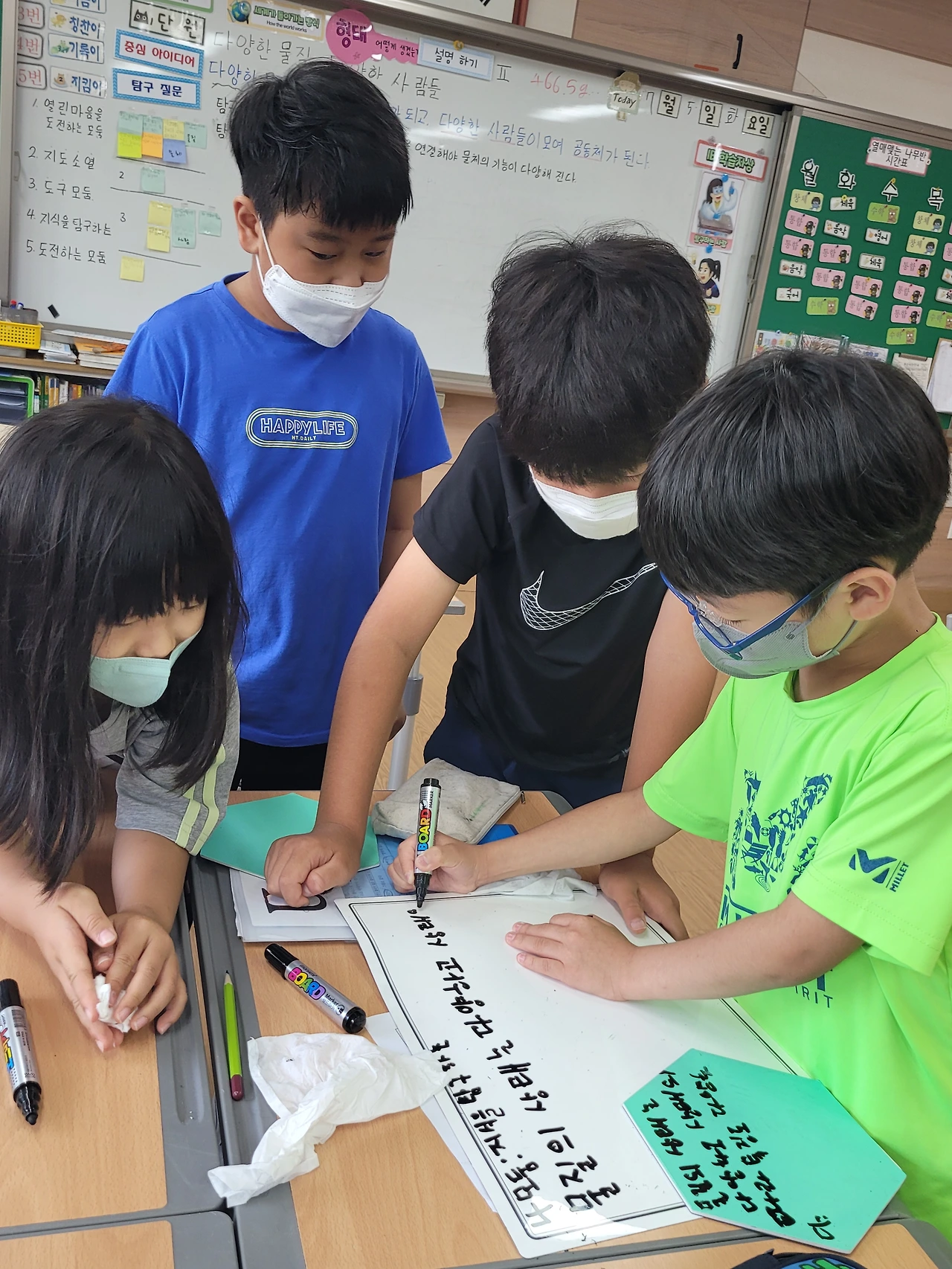 라는 일반화 문장을 만들었습니다. 지난번에도 그렇고 이번에도 아이들이 만든 문장이 제가 처음 단원을 설계하면서 만든 일반화 문장보다 뛰어나다는 생각을 하게 됩니다.