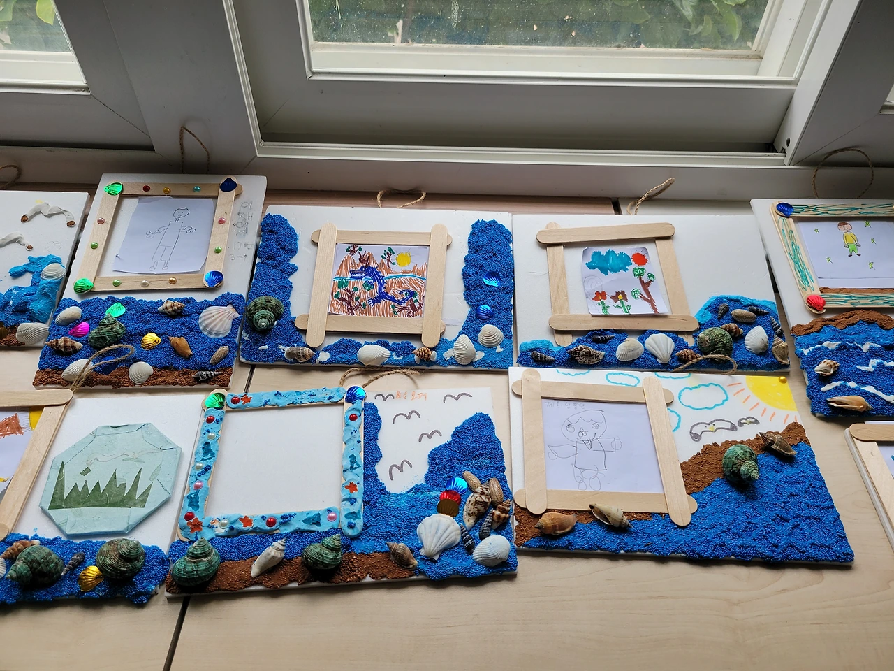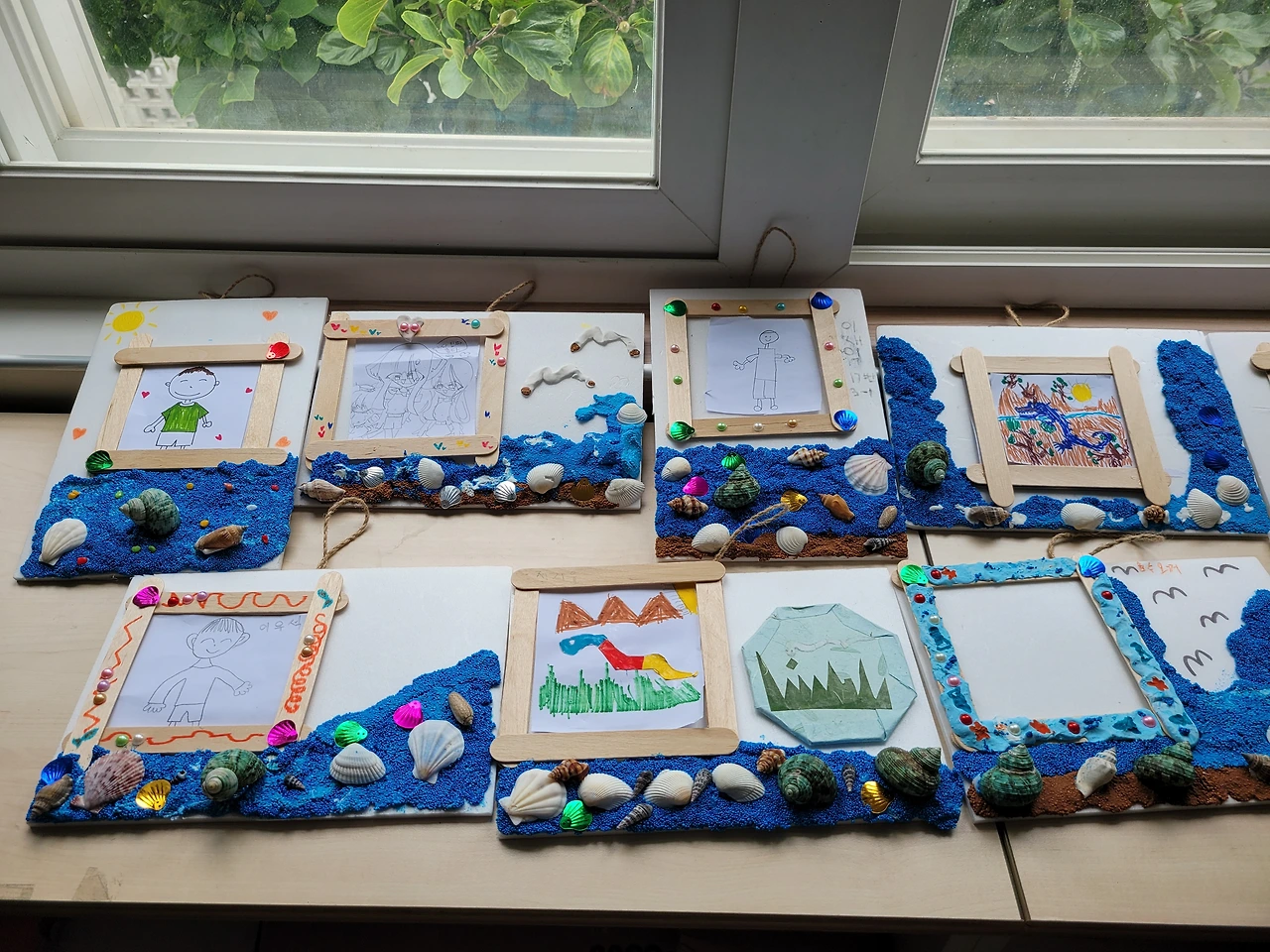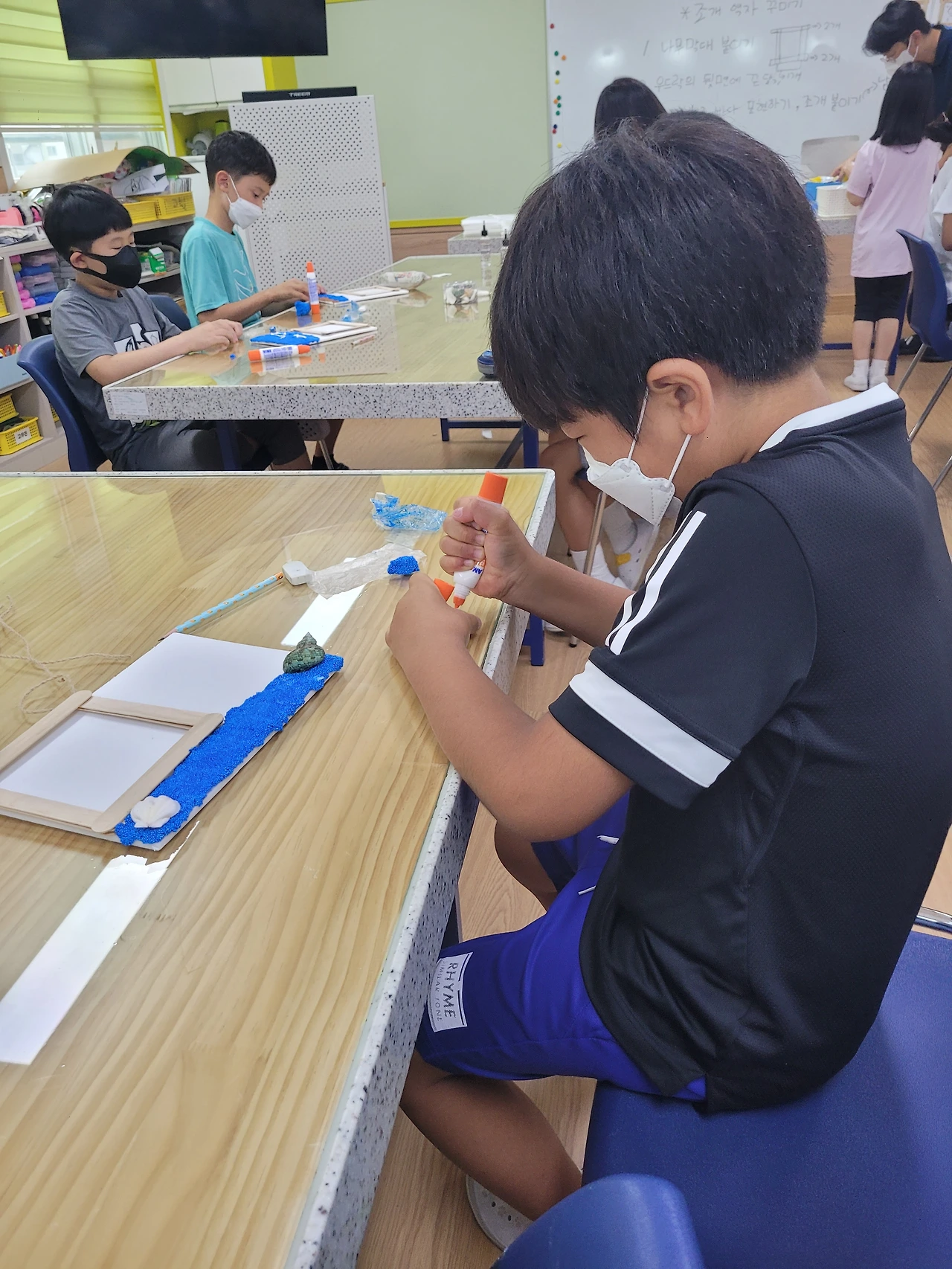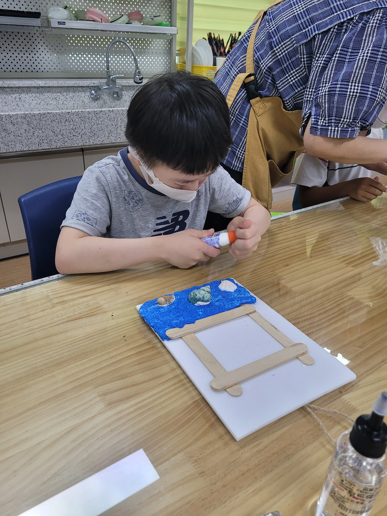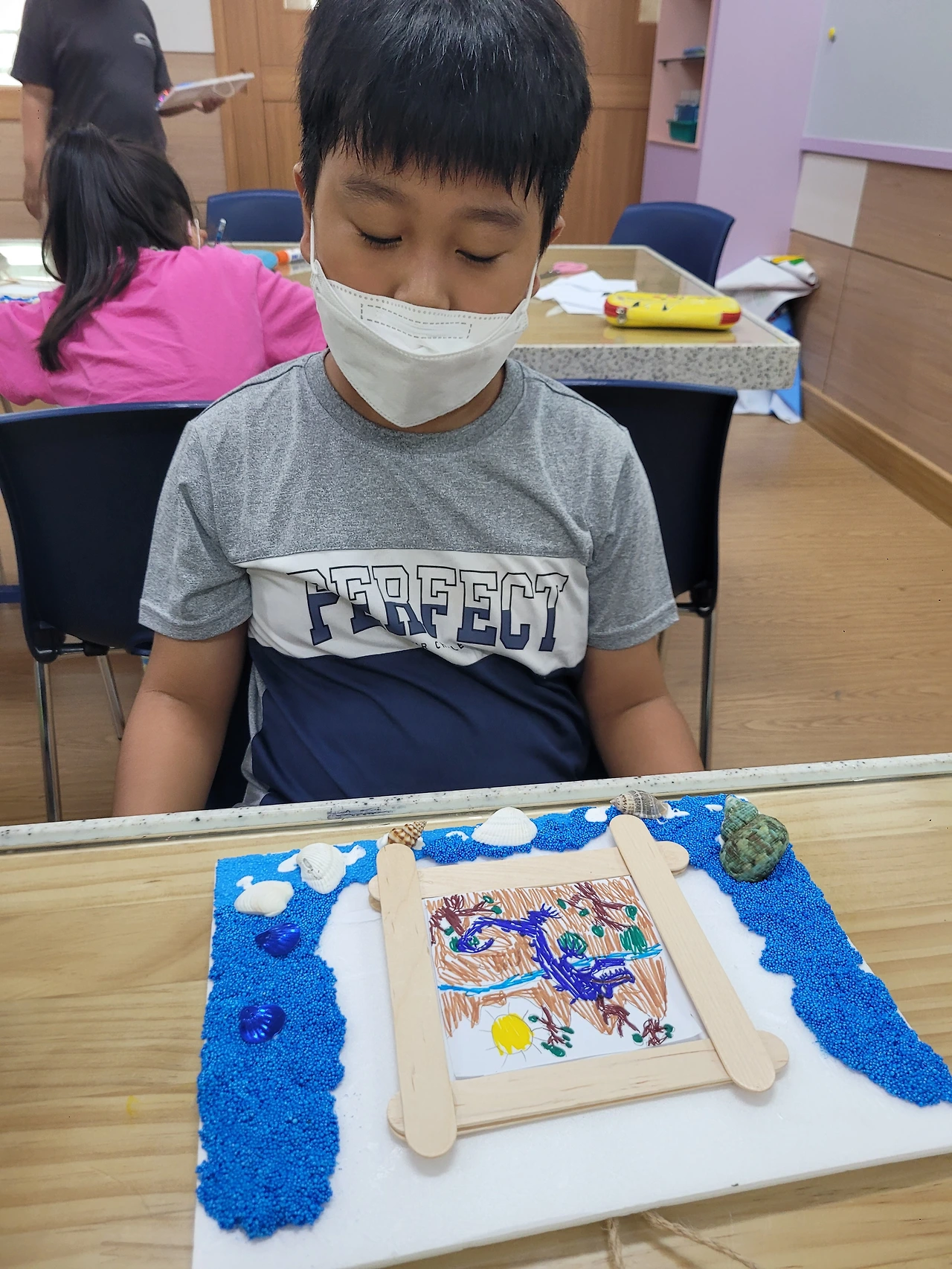오늘은 지난주에 이어 공예 수업도 했습니다. 아이들이 지난주에 만든 거울과 이번 주에 만든 액자를 집에 가지고 갈 겁니다. 바로 쓰레기통에 들어가지 않도록 잘 관리해주세요!