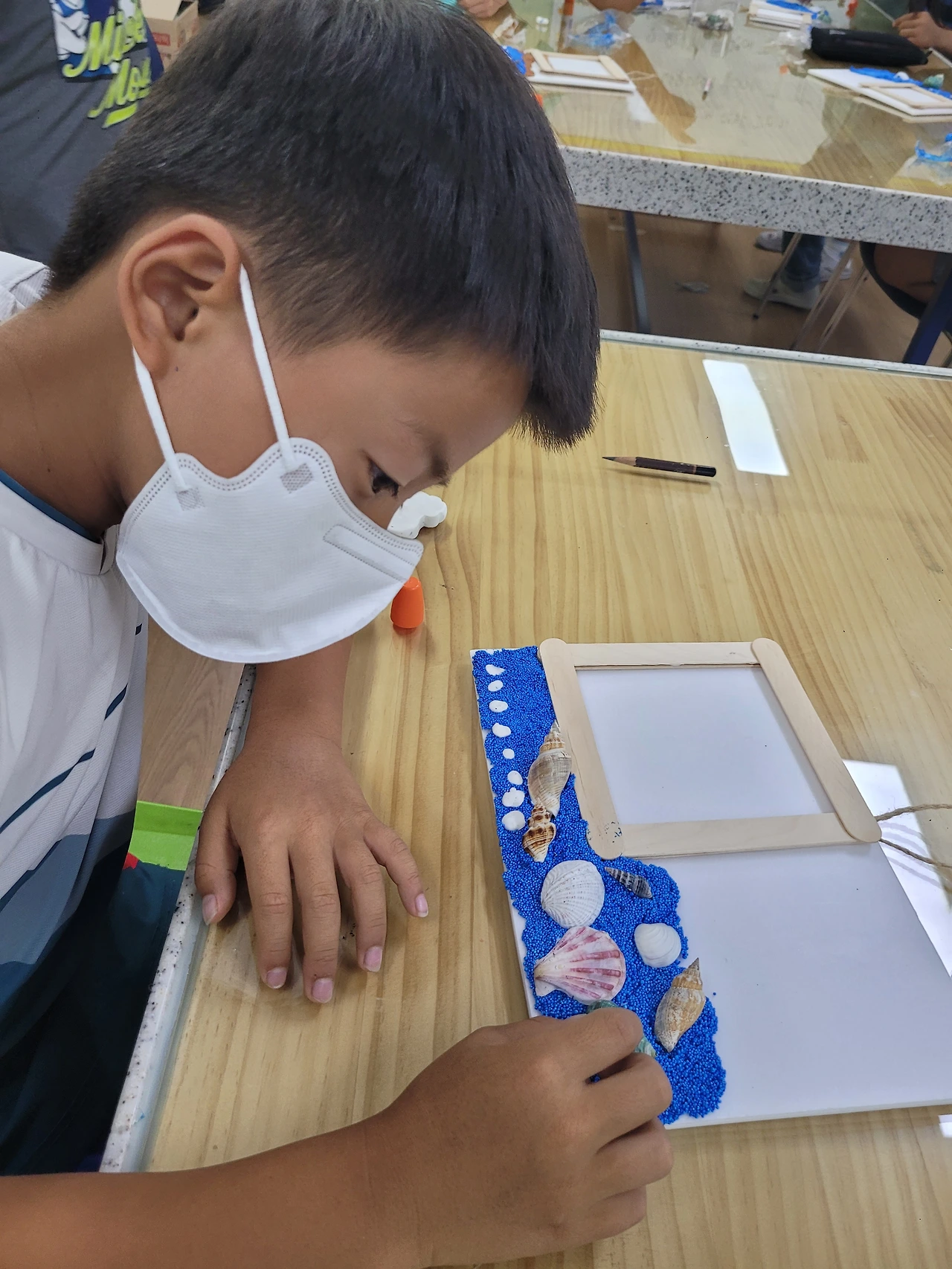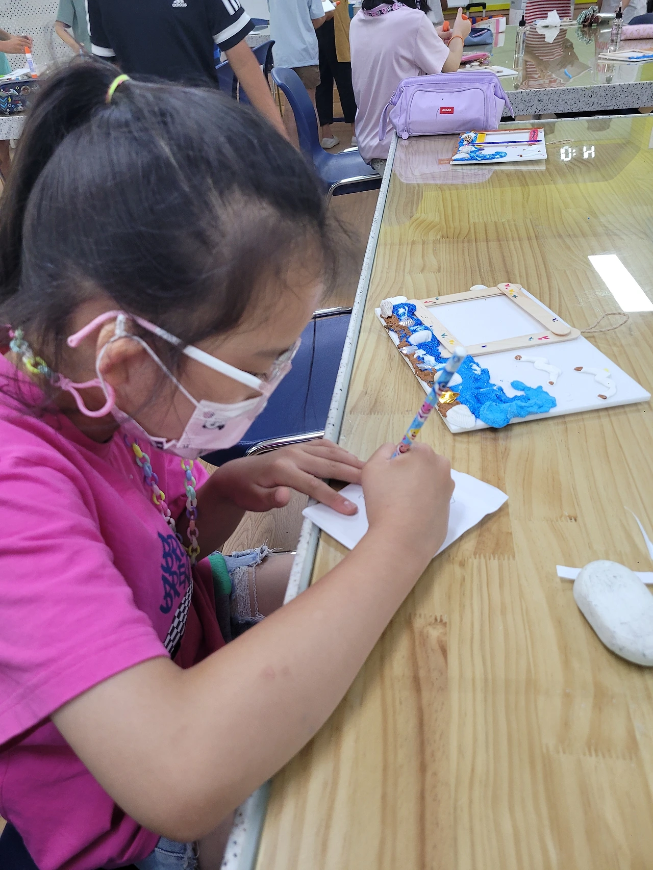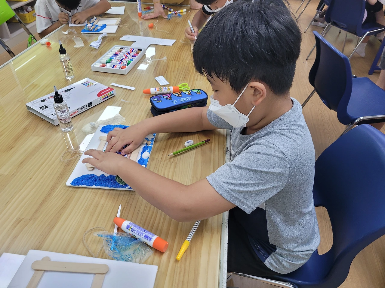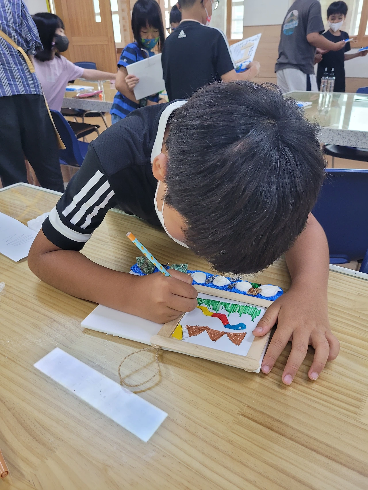 오늘은 지난주에 이어 공예 수업도 했습니다. 아이들이 지난주에 만든 거울과 이번 주에 만든 액자를 집에 가지고 갈 겁니다. 바로 쓰레기통에 들어가지 않도록 잘 관리해주세요!