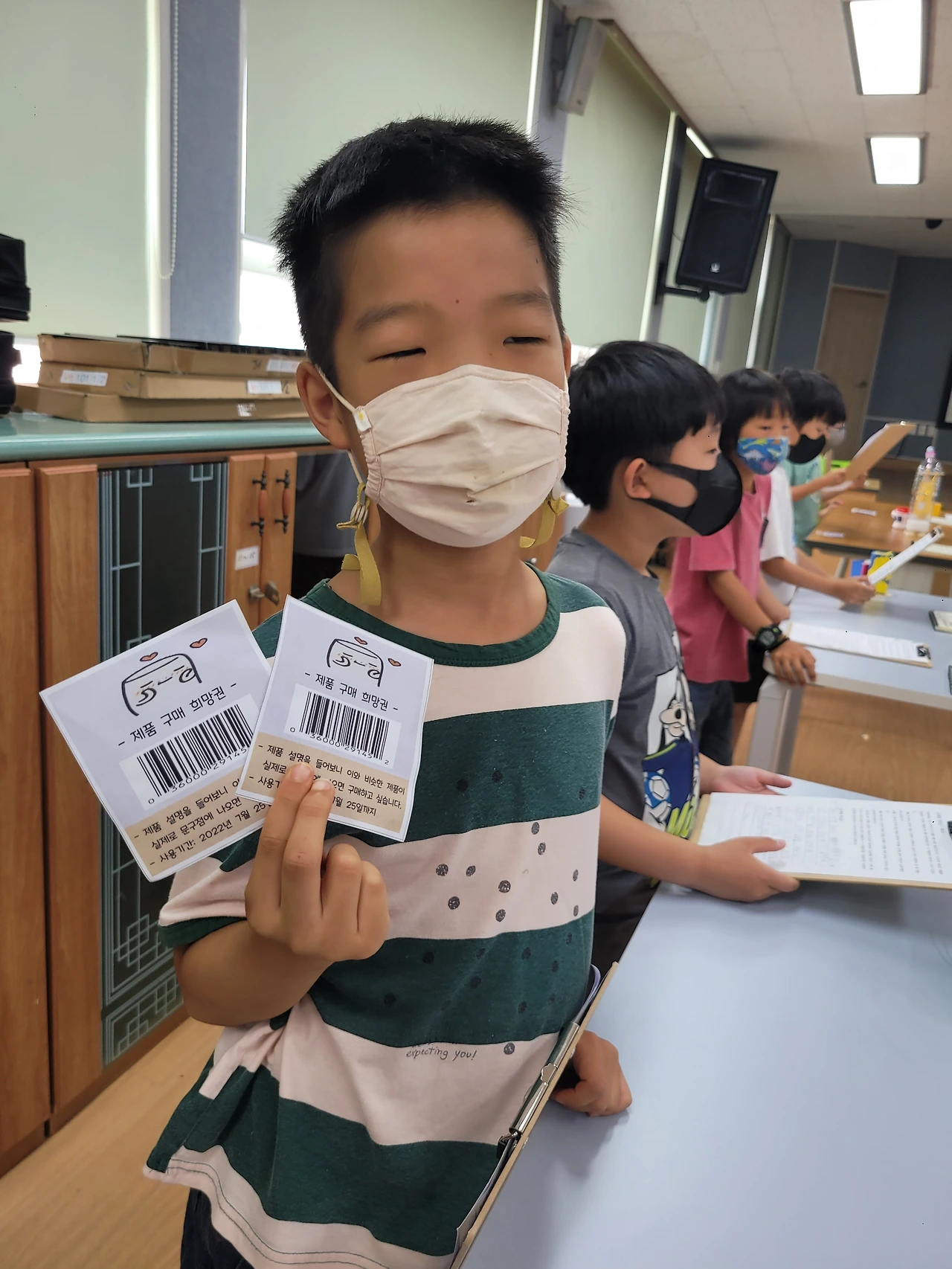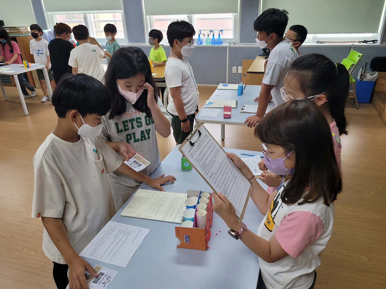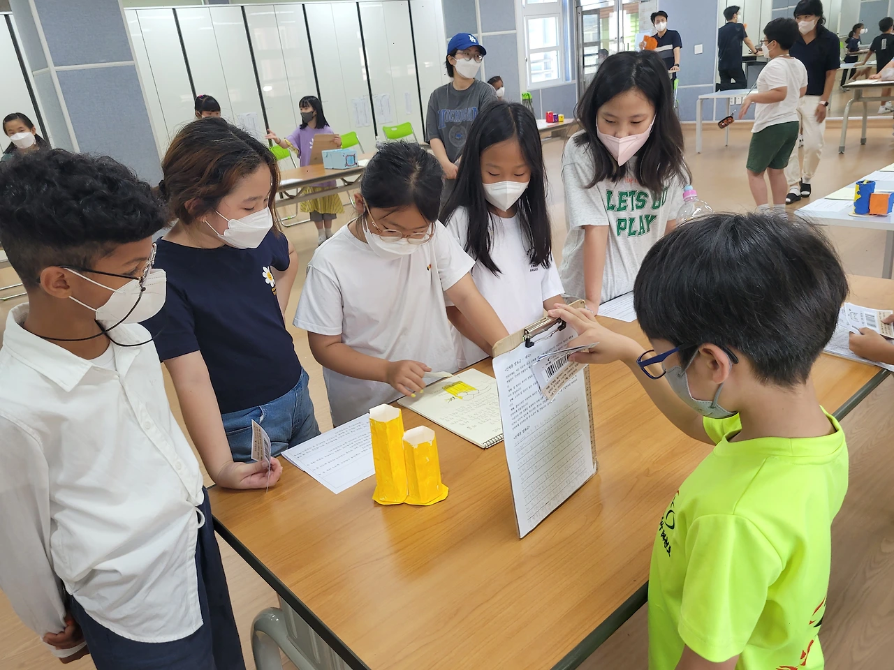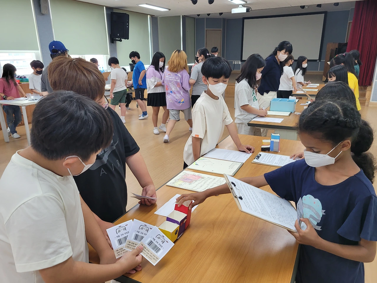 오늘 드디어 최종 활동으로 4학년 학생들을 초청해서 신제품 박람회를 개최 했습니다. 시작하기 전에 아이들의 긴장한 모습이 너무 귀엽고도 대견스러웠습니다.