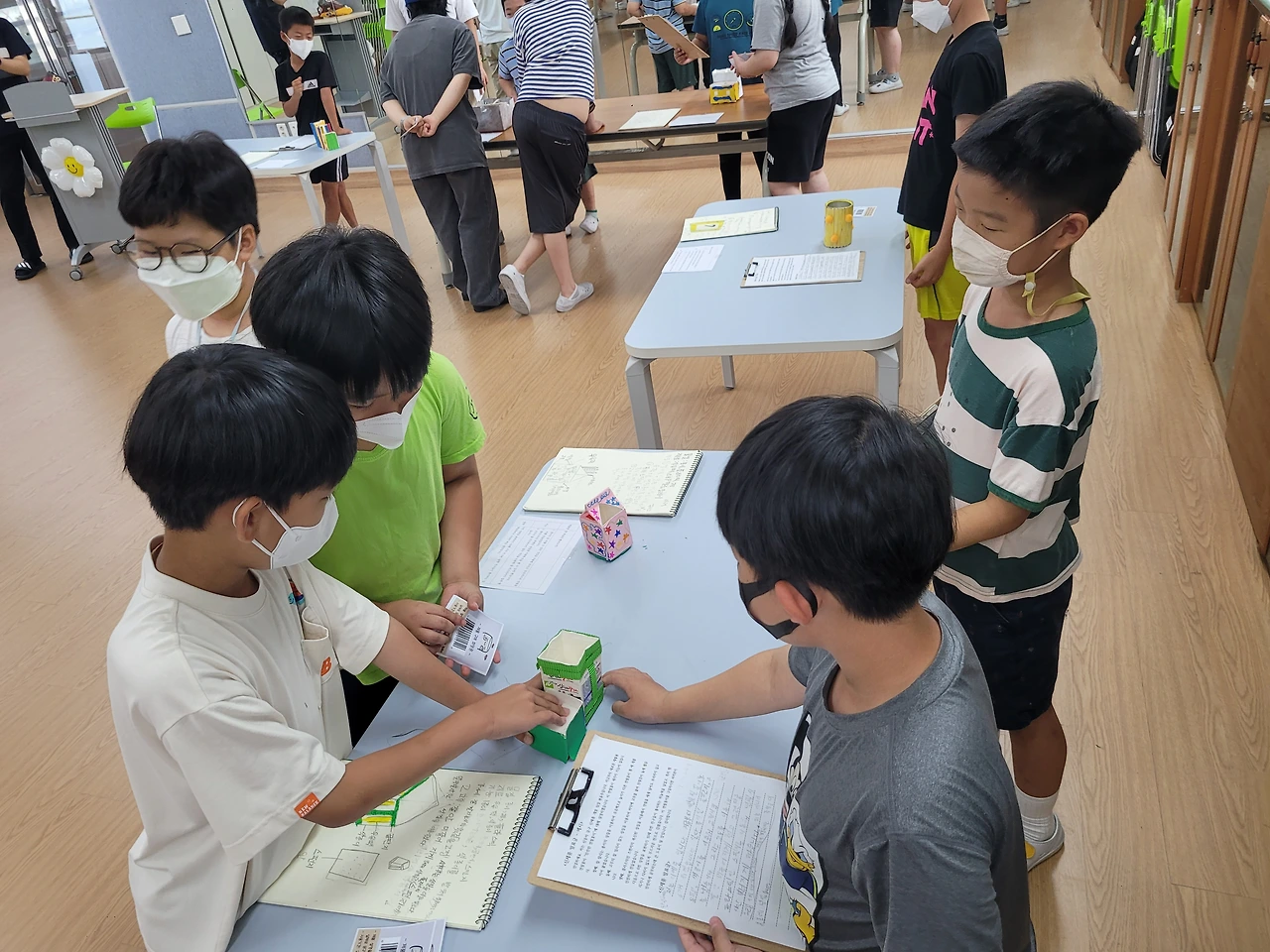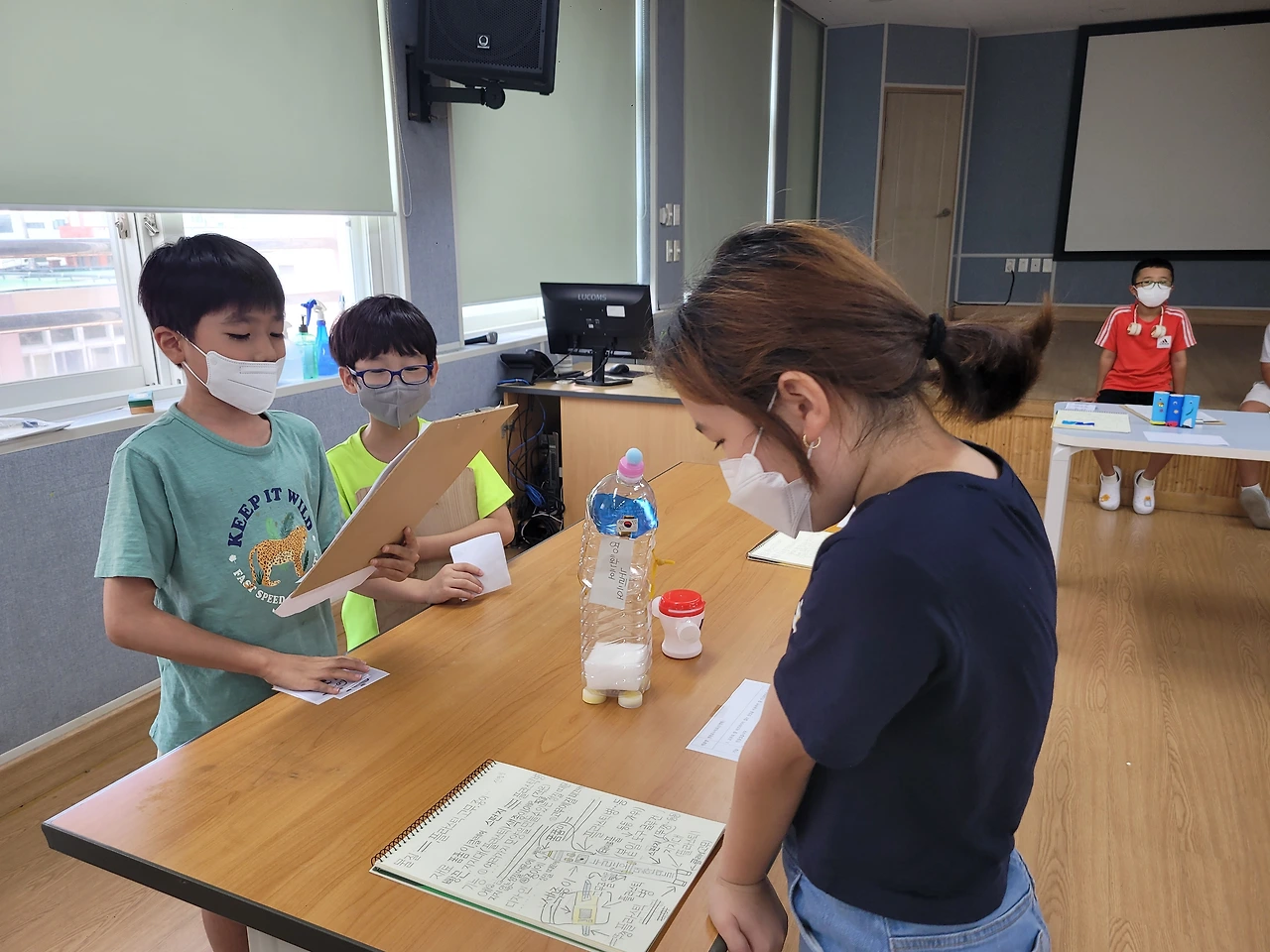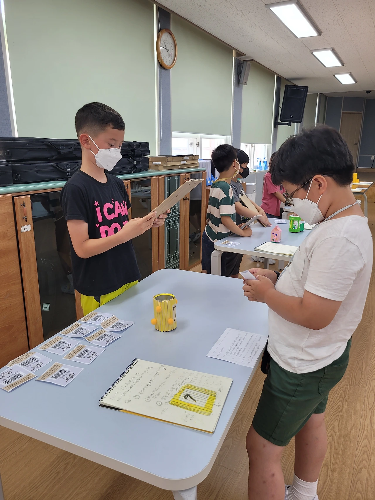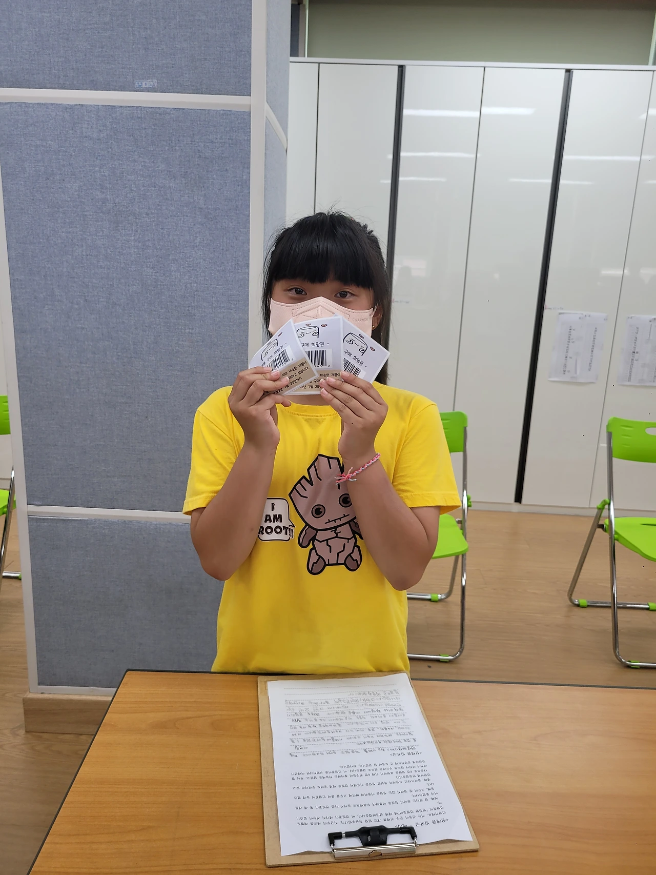 오늘 드디어 최종 활동으로 4학년 학생들을 초청해서 신제품 박람회를 개최 했습니다. 시작하기 전에 아이들의 긴장한 모습이 너무 귀엽고도 대견스러웠습니다.