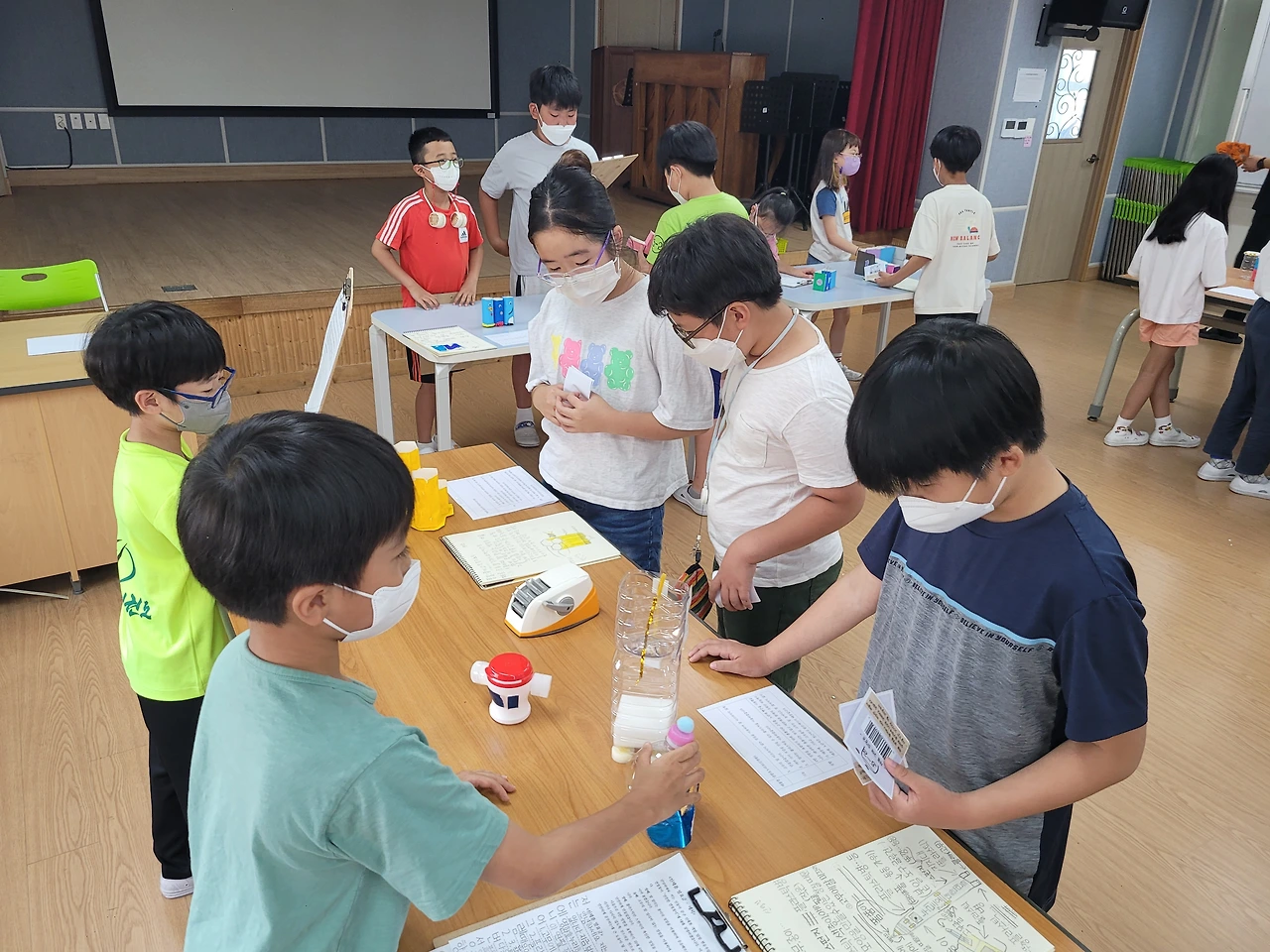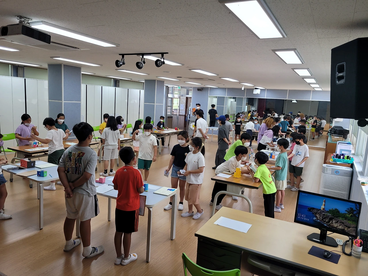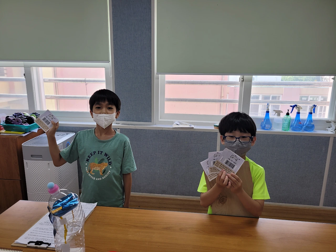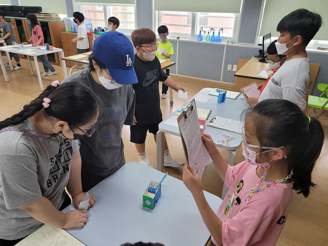 오늘 드디어 최종 활동으로 4학년 학생들을 초청해서 신제품 박람회를 개최 했습니다. 시작하기 전에 아이들의 긴장한 모습이 너무 귀엽고도 대견스러웠습니다.