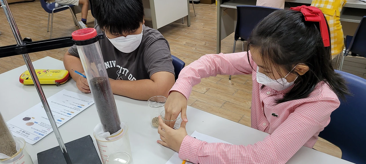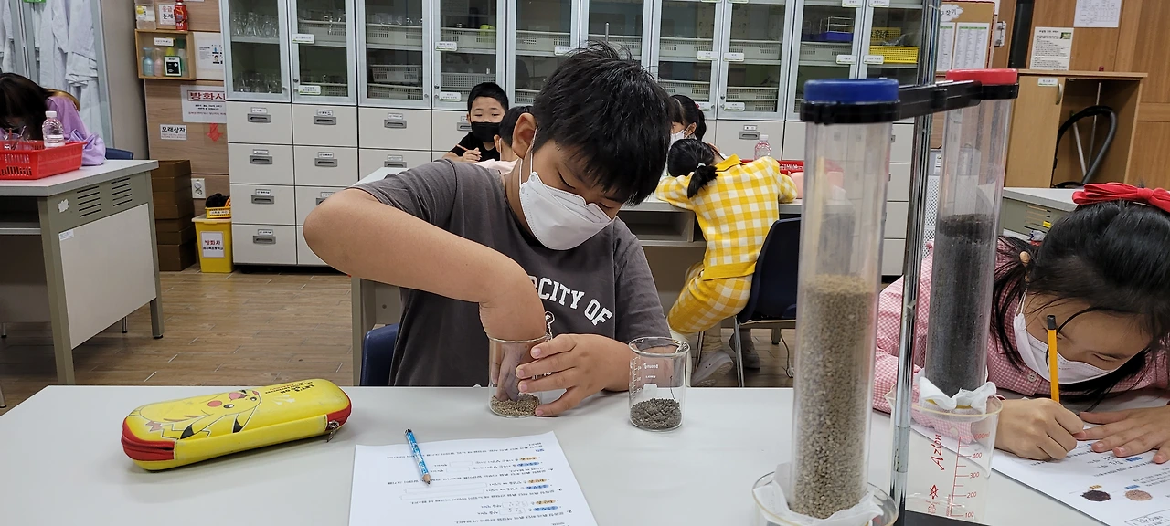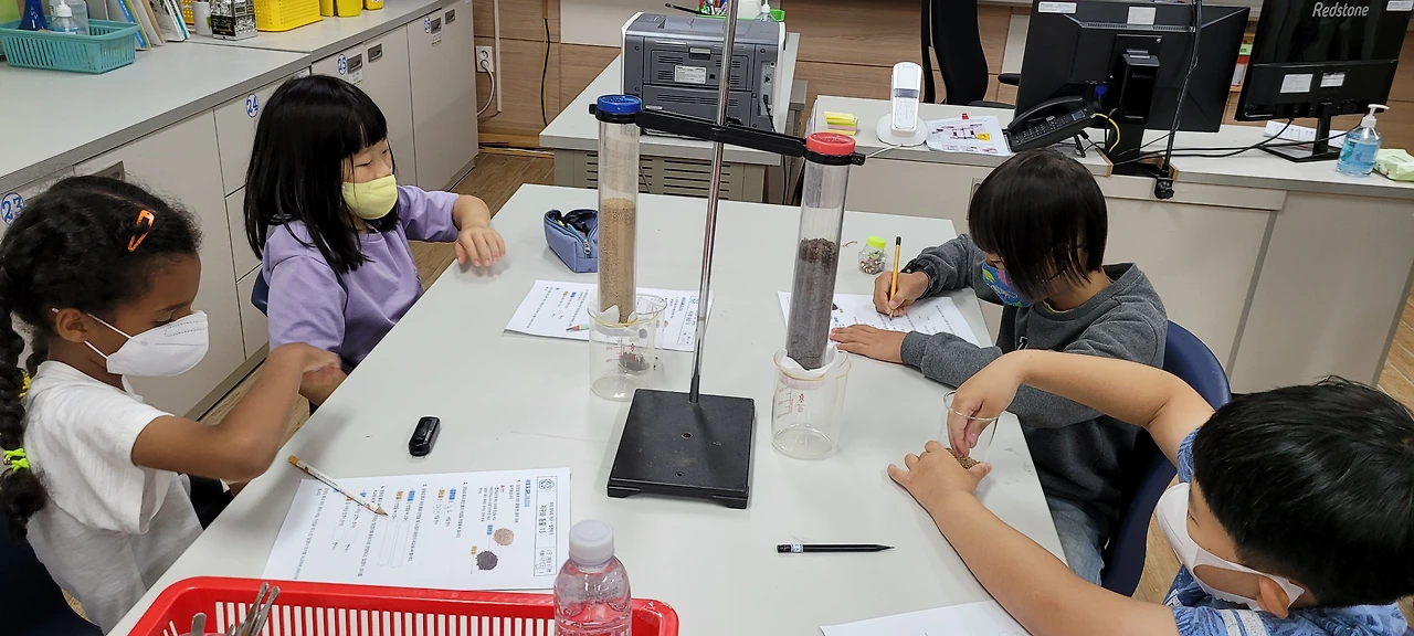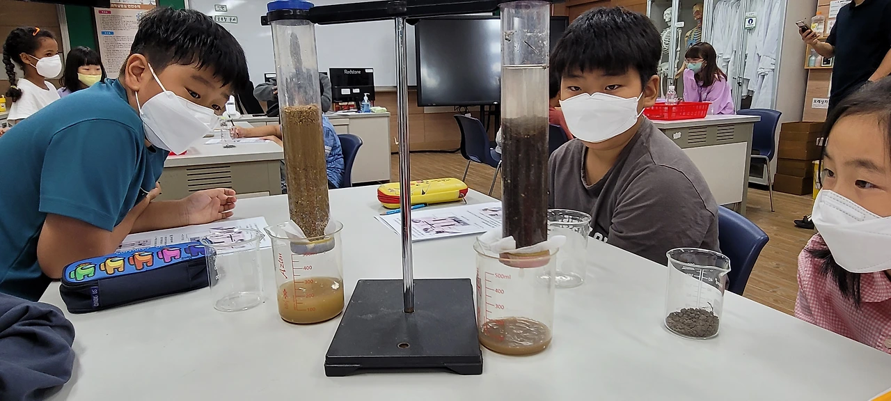 아쉬움은 뒤로 하고, 오늘도 열심히 탐구를 이어갑니다. 오늘은 지난 목요일 바닷물과 육지 물 탐구에 이어서 땅에 대해서 알아보려고 합니다. 땅은 흙으로 되어 있습니다.