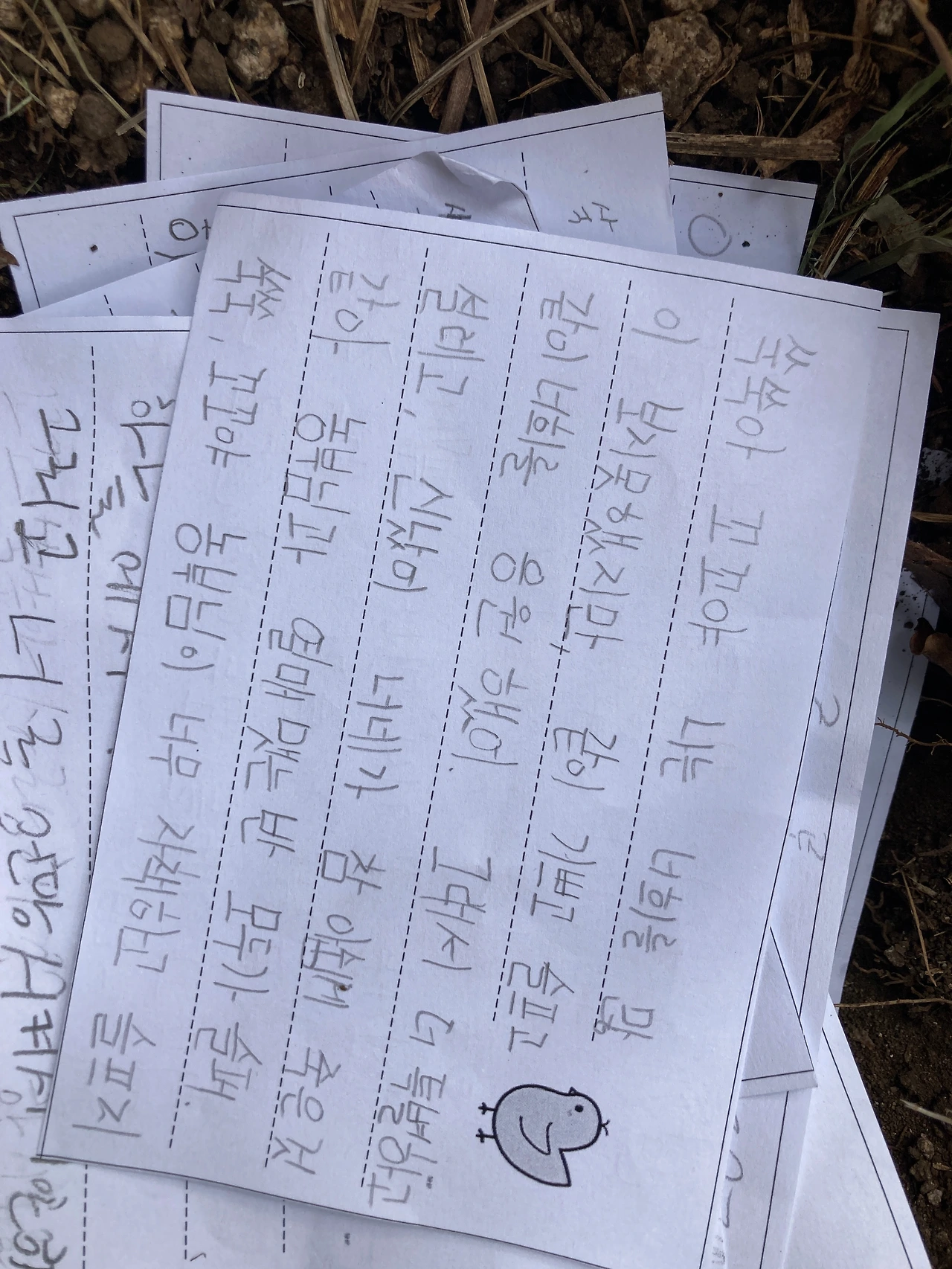 교실에서 아이들과 함께 떠나간 쑥쑥이와 꼬꼬에게 편지를 썼습니다.