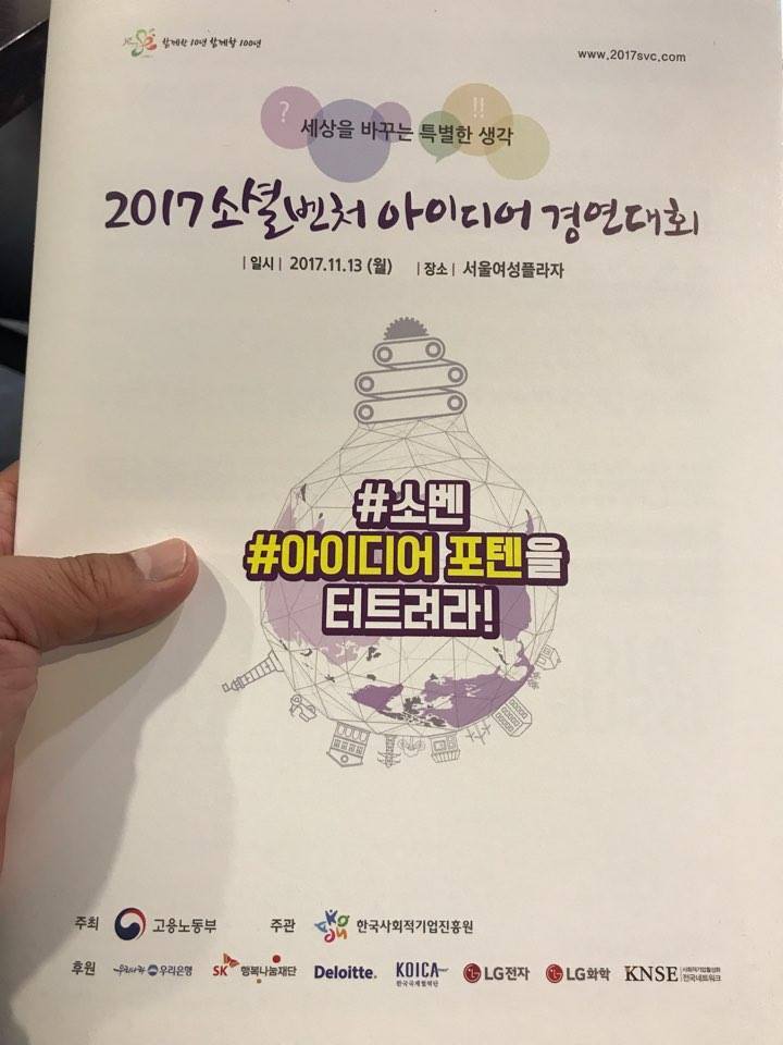 2017 소셜벤처 아이디어 경연대회 최우수상(고용노동부장관상)을 받았다!