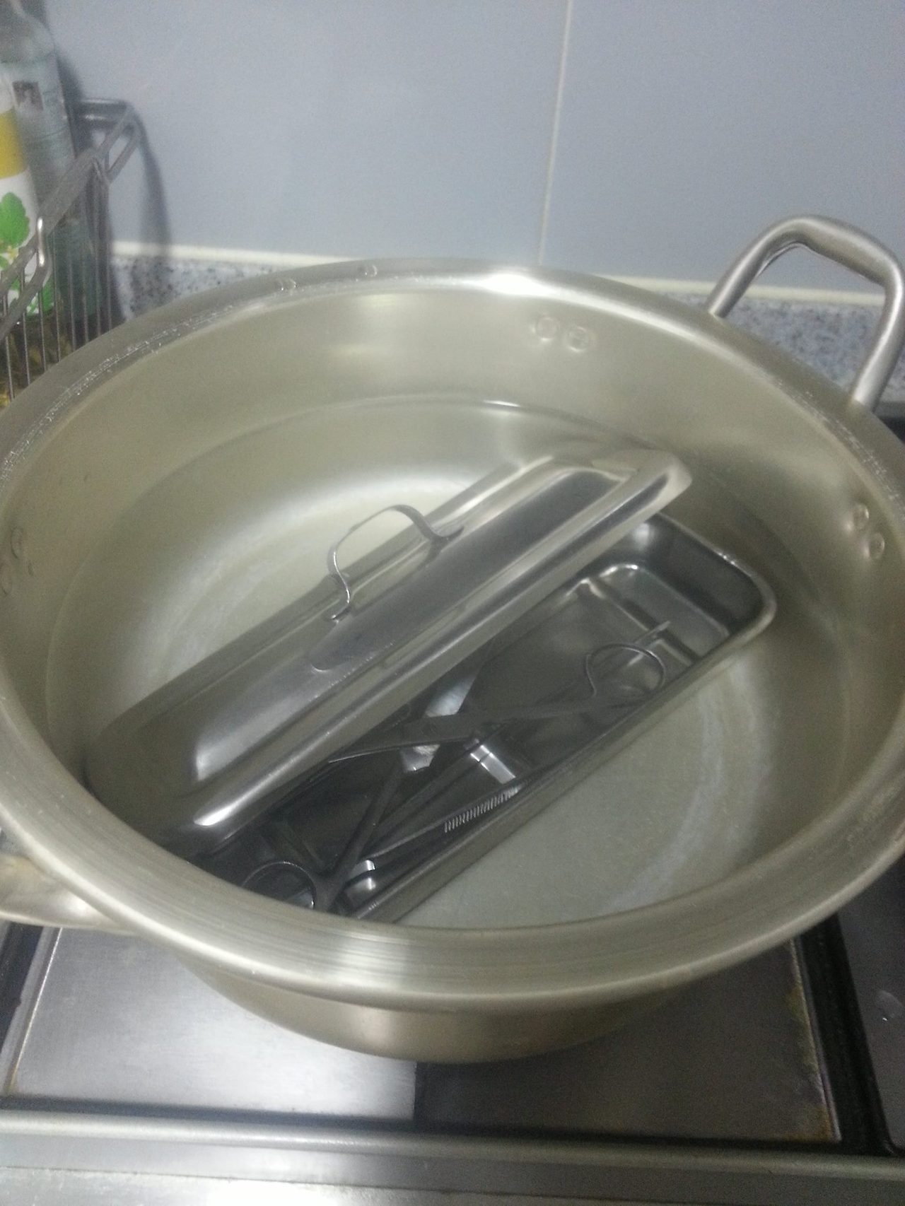 핀셋 통, 핀셋 2개, 의료 가위 모두 내 손에서 쓰인 지 17년이 넘은 것들이다. 이 외에도 소독하는 게 몇 가지 더 있다. 열기 소독 전용 냄비도 신혼 때 새로 사서 써왔으니 10년 가까이 됐다.