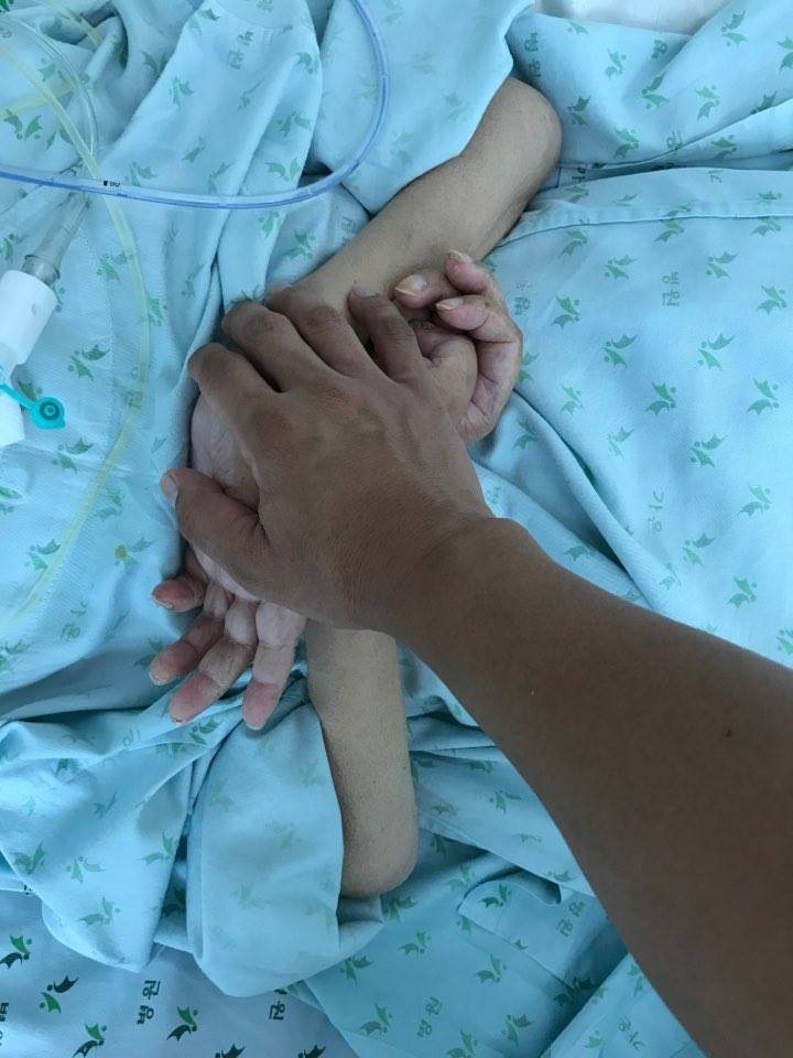베갯잇을 등에 깔아드리고 간호사님께 두피 감염이 되지 않는 소독된 천을 매일 공급할 수 있는지 문의했다. 1층 중환자실에서는 가능했지만 5층 병동에서는 베개 관리를 잘 해드리는 선에서 설명해 주시기에 고집을 피우기보다 따르기로 했다.