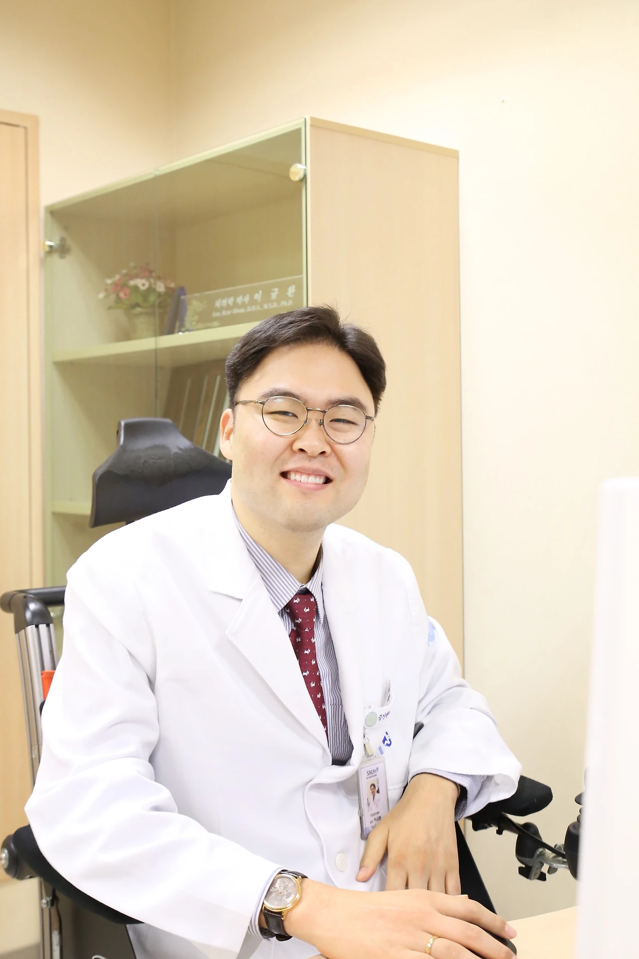 진료실에 들어가자 의사 가운을 입고 전동휠체어에 앉은 이규환 교수가 환한 웃음으로 반겼다. 인자한 목회자의 인상과 음성을 지녔다. 근황이 어떤지 물었다. “열심히 살려고 노력하고 있습니다. 인터넷에서 저를 본 분들은 제 인생철학을 ‘지독하게 살다 보면 길이 열린다’로 알고 계시는데요. 아닙니다. 제 삶의 이정표는 ‘어제보다 조금만 더 따뜻한 사람이 되자’입니다.”