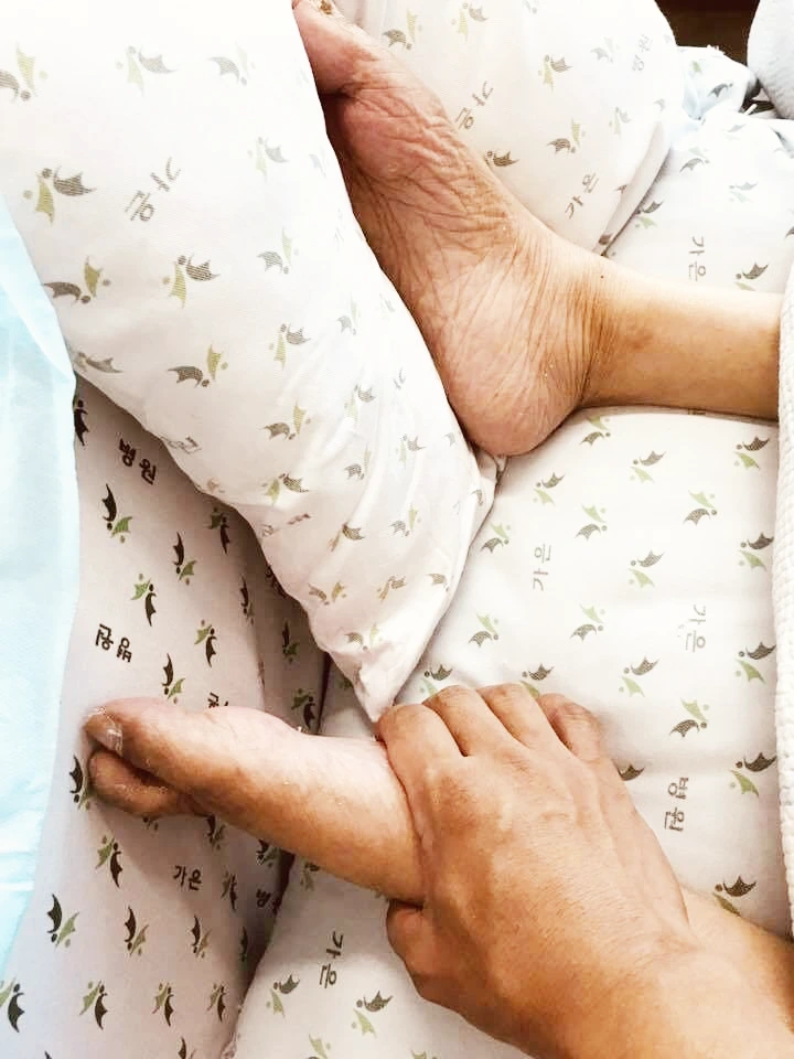 관장을 하고 매번 어머니 발을 씻기다가 오랜만에 씻겨내며 지압과 마사지가 이뤄진 덕분인지 침을 안 흘리고 편안한 표정이 되셨다. 얼마나 때가 많이 밀려 나오는지는 내게 중요하지 않다.