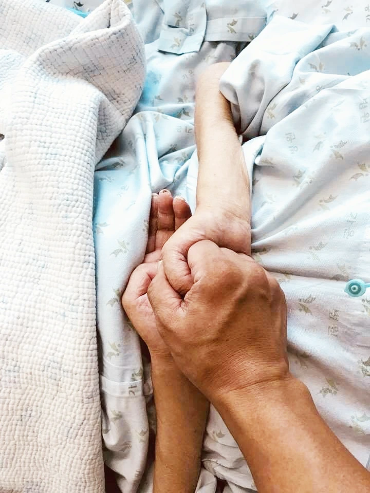 어머니 간호하다가 허리 근육이 뭉쳐 심한 요통을 앓았다. 한 주가 흐른 오늘 스트레칭과 파스만으로 70퍼센트 정도 회복됐다. 운전하는 동안 조금 편해진 허리에 다행스러워하며 병원에 도착해 어머니를 뵀는데, 여전히 침을 많이 흘리고 계셨고 표정도 고통을 호소하신다.