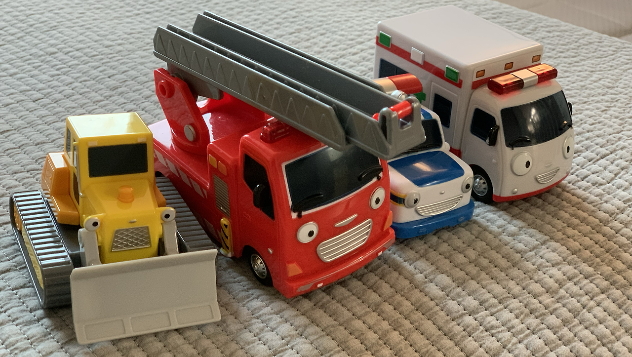 후처치하는 동안 사랑이에게는 동생이 준비한 선물을 주었다. 임신 중에 종종 ‘바다가 사랑이 만나러 오는 날 선물 준비한대~ 뭐 받고 싶어?’ 하면 ‘삐뽀차(구급차)! 삐용차!(경찰차)’ 하길래 커다란 구급차면 되겠지 하고 구급차를 준비했다. 그리고 최근에 소방차를 더 좋아하게 된 사랑이를 위해 타요 시리즈의 소방차 프랭크도 준비. 구급차는 바다가 준비한 거라고, 소방차는 아빠가 사랑이가 엄마 너무 잘 도와줘서 주는 거라고 말해주었다. 엄청 좋아하겠지 내가 더 두근두근하며 쳐다보는데... 선물을 뜯어본 사랑이가 어쩐지 실망스러운 얼굴로 “삐용차는?” 하며 되물었다. 자기 생각엔 경찰차까지 있어야 하는데 그게 없었던 모양이다. 다행히 할머니의 선물로 준비한 경찰차가 있어 “어; 그건 할머니가 사랑이 만나러 오실 때 주신대” 하고 황급히 마무리 지었다. (실제로 가족들이 만나러 올 때마다 ‘엄마를 잘 도와줘서 주는 선물’로 타요 경찰차와 구급차, 불도저를 주었는데 사실 모두 엄마가 준비한 것들이었다. 동생이 생겨서 느끼는 박탈감보다 엄마를 도왔다는 성취감을 견고하게 해주고 싶었다. 그 마음이 전해져서인지 사랑이는 지금도 매일을, 아침에 눈뜨면서부터 잠들 때까지 이 자동차들을 끼고 산다.)