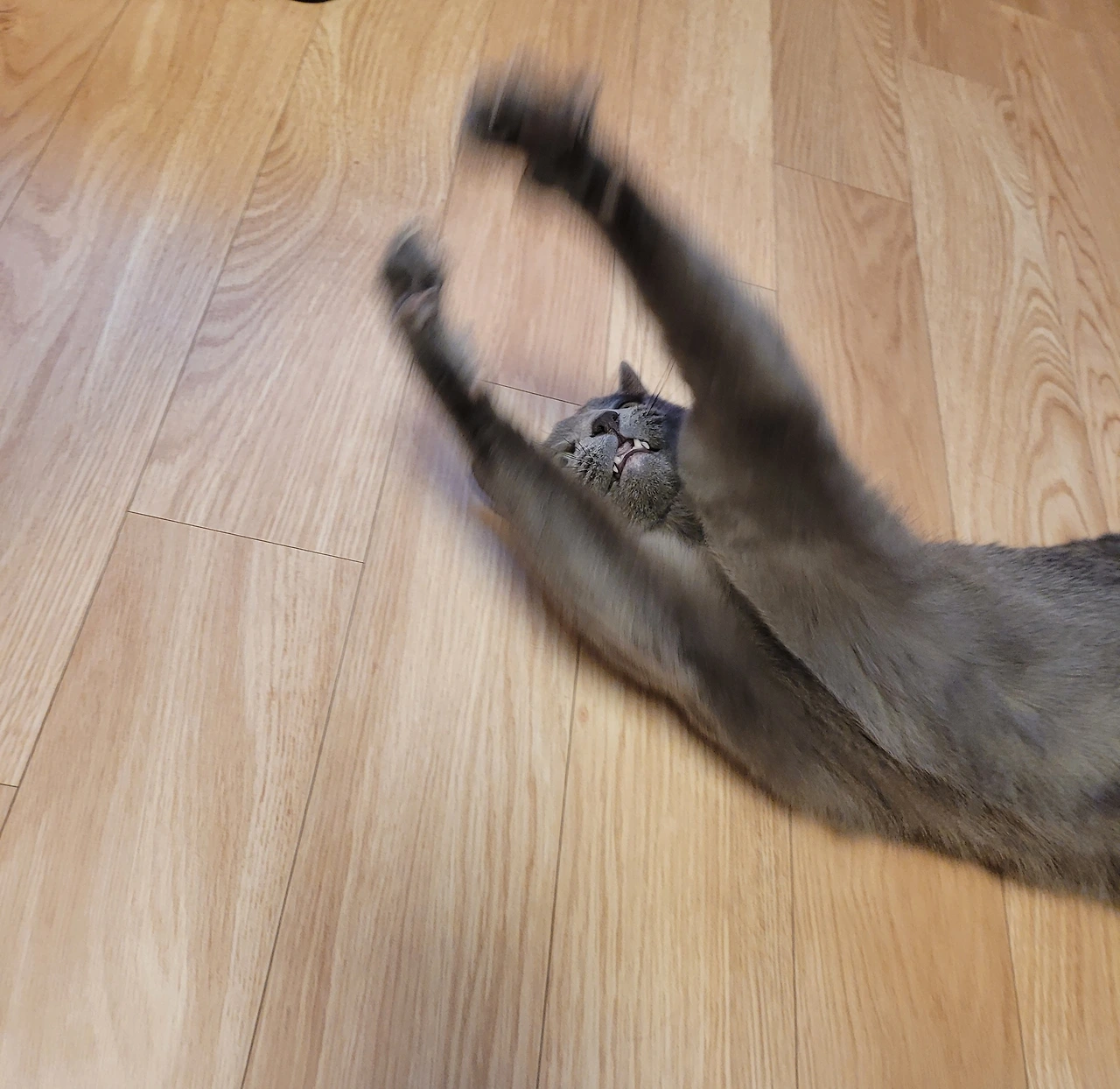 놀이는 고양이의 삶에 있어서 굉장히 중요한 부분이다. 고양이에게 놀이란 사냥을 모방한 모든 것이다. 동체시력이 발달한 고양이는 움직이는 물체에 본능적으로 반응을 한다. 물론 집사가 재미없게 놀아주면 우리 집 고영희는 금방 흥미를 잃어버린다. 움직임 패턴이 너무 뻔하거나 반복적이면 고영희는 반응하기를 거부한다. 최대한 사냥감의 움직임을 그럴듯하게 모방해야 한다. 살아있는 쥐꼬리처럼... 빠르게 움직였다가 경계하 듯 멈췄다가... 느낌 있게 말이다.