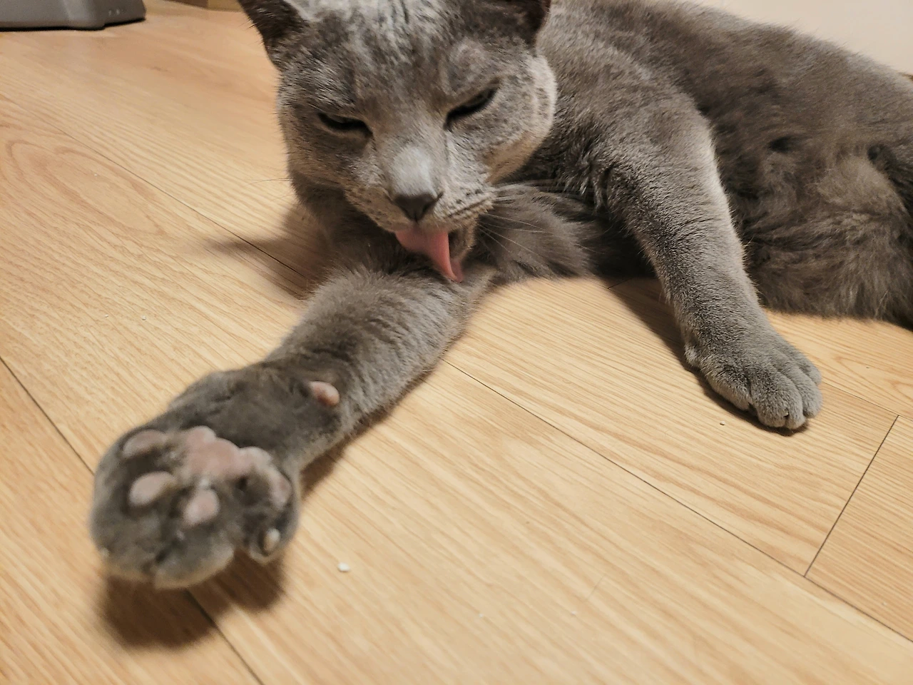 영희 표정을 보면... 왠지 불쾌해 보이는 건 기분 탓인가. 털방향대로 만져도 저러고 다시 핥는다. 다시 보니 좀 헝클어진 것 같기도 하고? 그래도...