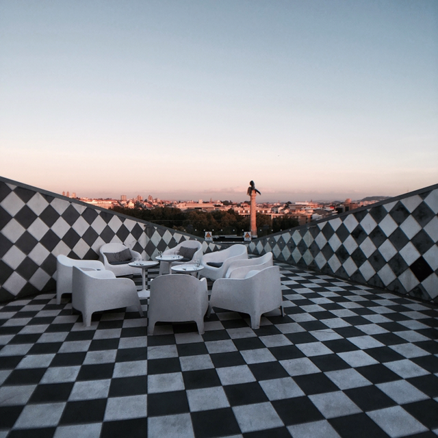 가이드 투어를 통해 루프탑에 바가 있다는 사실을 알게 되었다. 사진을 본 이상 가보지 않을 수 없다 생각될 정도로 흥미로웠다. 포르투를 떠나기 전날 마지막 저녁을 Casa da Musica 레스토랑에서 보내기로 마음먹었다. 포르투에서 늘 맛있게 먹었던 문어도 메뉴에 있겠다, 가장 인상 깊었던 건물을 다시 한번 볼 수 있는 기회였다. 레스토랑과 이어진 외부로 나가면 사진에서 본 루프탑 테라스가 있다. 해 질 녘, 역시나 상상했던 것만큼 아름다운 모습을 하고 있었다. 너무 추워서 결국 식사는 실내에서 하기로 했지만 보는 것만으로 충분히 만족했던 그곳.