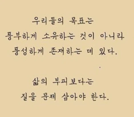 내 이름 석자가. 회사라는 타이틀과 직급, 연차를 빼고나서 나는 무엇으로 존재할 수 있을까? 나는 누구이고 무엇이고 앞으로 남은 인생은 어떻게 살아야 할것인가? 회사원 김모양이 아니면 나는 누구일까? 나는 무엇일까? 나는 나의 삶의 목표를 내가 하고싶은일이 무엇인지 알고 그리고 풍성하게 존재하는 것으로 나는 답을 내렸다. 그래 나를 찾자.