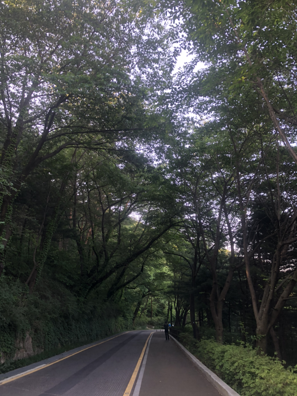 업힐인 탓에 걷기반 호흡반 뜀은 10프로 정도? 습하습하 하며 어제 먹은 목살을 태우고 있는데