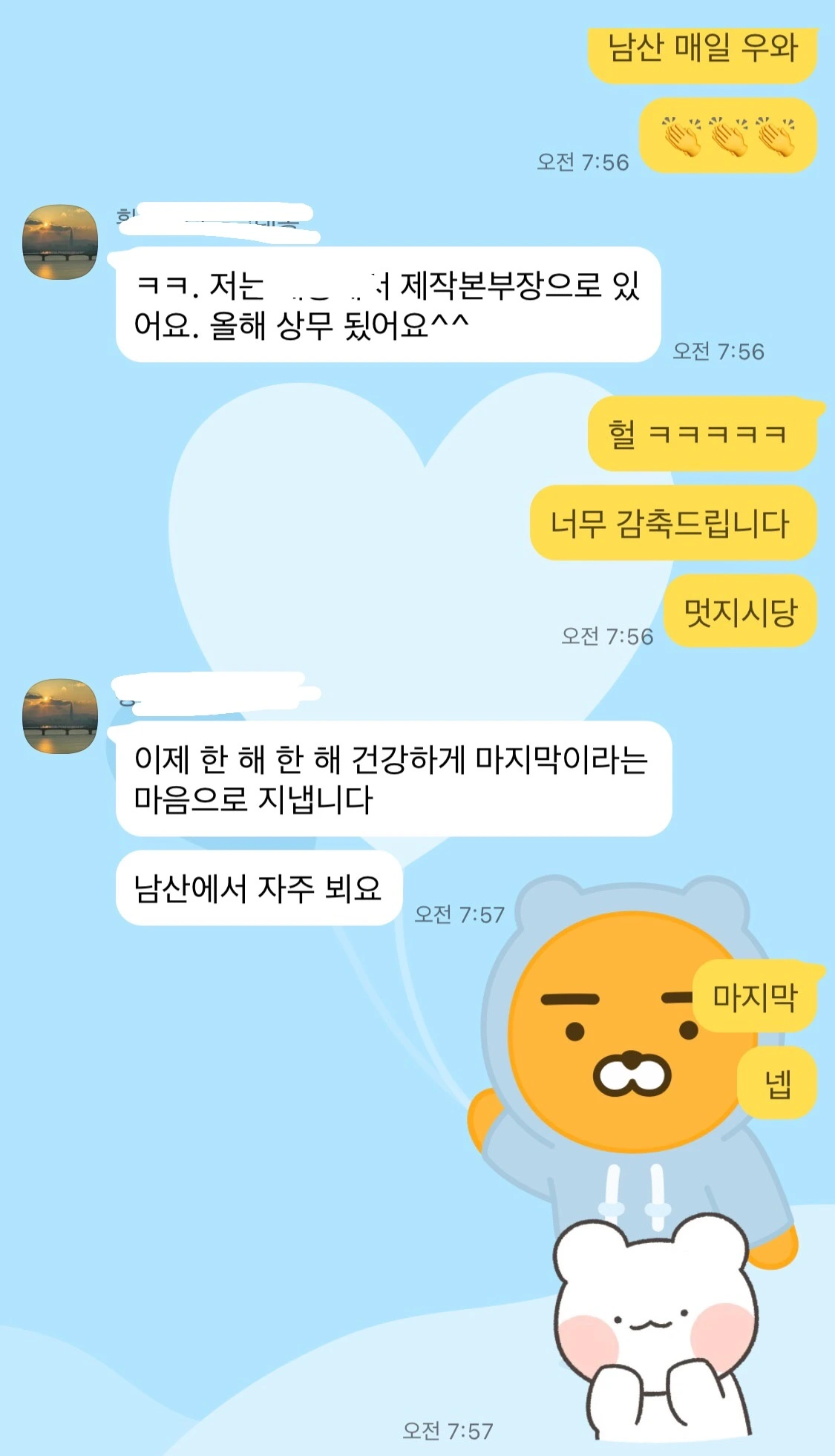 아무쪼록 상무님. 곧 또뵈요. 남산에서. 건강하게.