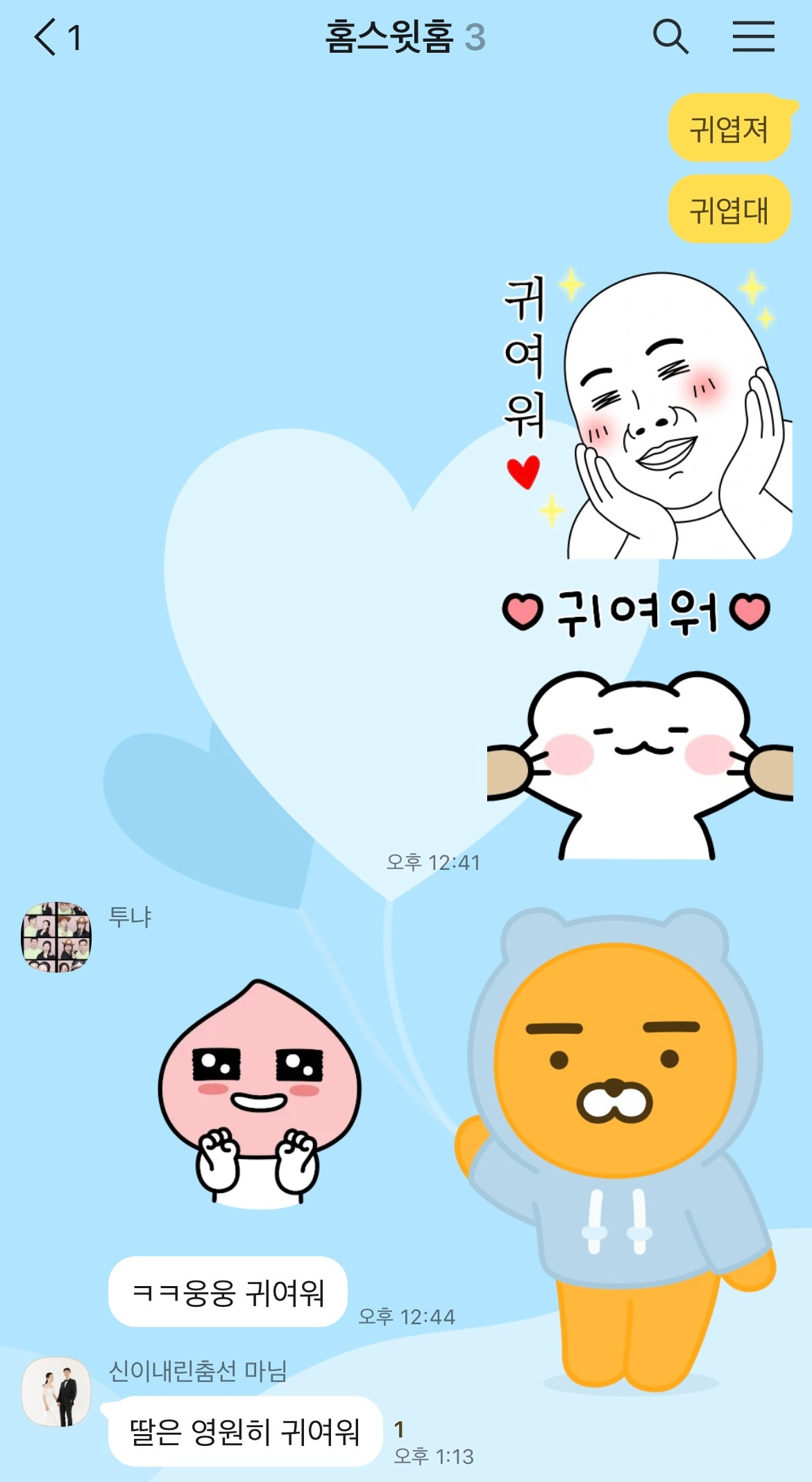 가족방에는 늘 칭찬과 추앙과 그리고 사랑이 넘친다