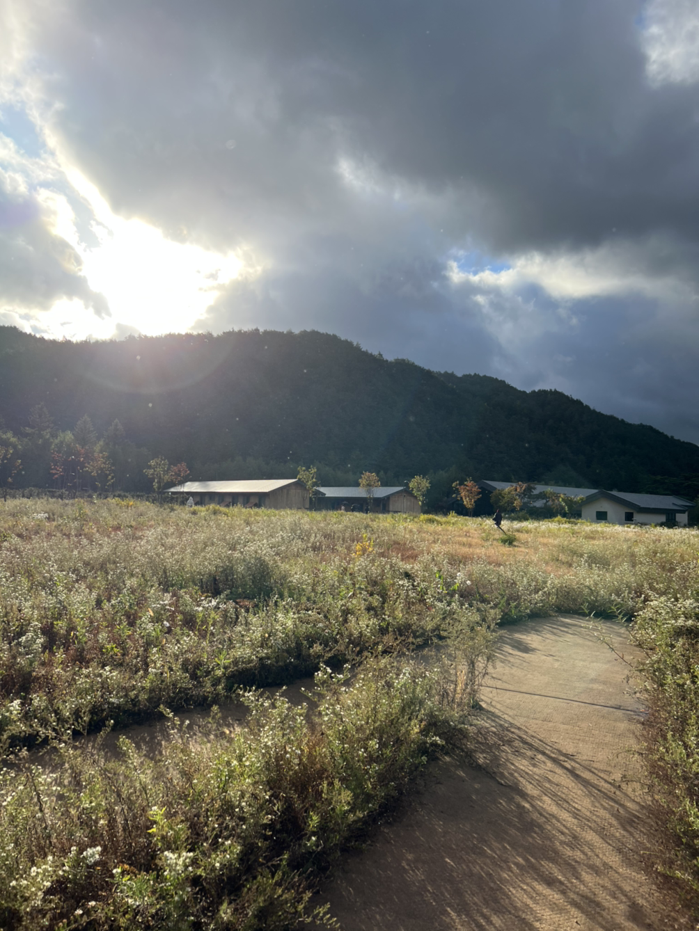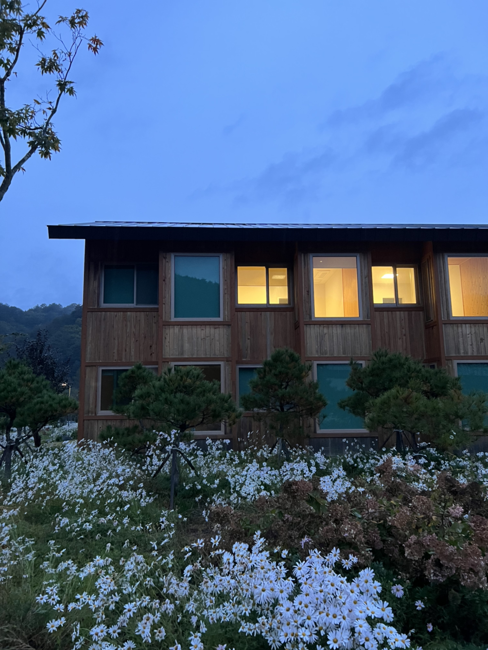 해가 뉘였지는 저녁 7시 무렵. 산이라 그런지 더 어둑어둑하다. 명상 수업에서는 호흡을 하는 명상 외에도 굉장히 색다른 명상이었다. 내 이름을 큰 소리로 시원하게 불러보기도. 밤 경치를 보기도. 옆 사람과 등을 맞대 보기도. 발의 감각을 깨우며 걸어보기도. 힘 빼고 숨 쉬는 그 모든 것이 명상이라고 했다. 내가 내 이름을 그 큰소리로 불러본 건 처음인 것 같다. 내가 내 이름 부를 일이 없으니까. 돌아가면서 내 이름 부르기를 하는데 처음 하는 생경한 광경에 쑥스러워하는 사람들이 많다. 악기와 같이 멋들어진 목소리로 내 이름을 부르는 사람도 물론 있고.