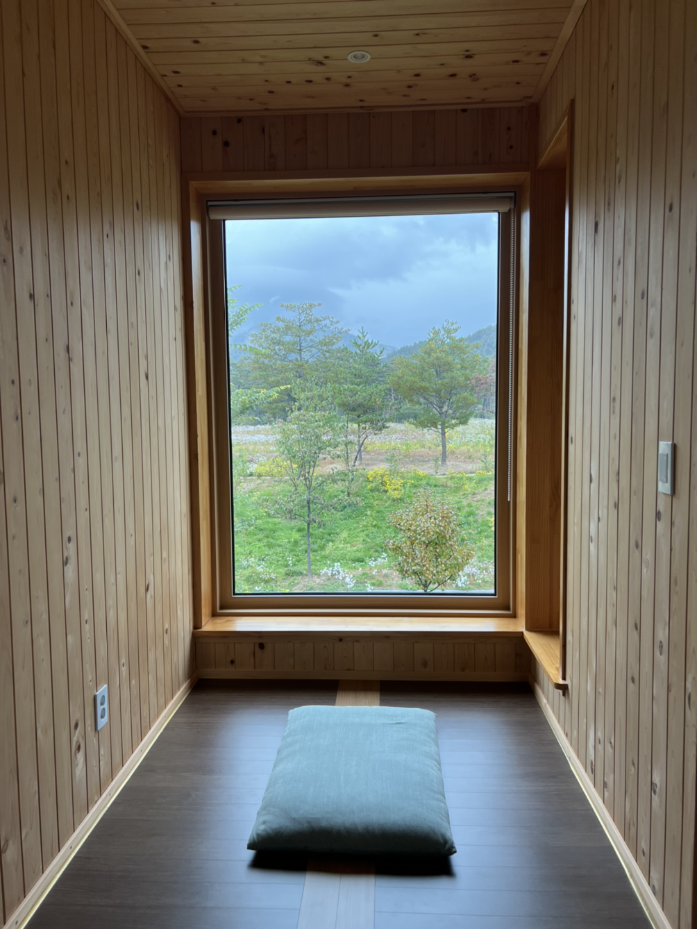 몸도 마음도 힐링이 아니 될 수 없는 단아하고 정갈한 곳. 디지털 디톡스를 지향하는터라 숙소에는 그 흔한 냉장고도 티브이도 심지어 와이파이도 없다. 한 가지 좋은 점은 모든 숙소 방마다 개인 통창이 내어져 있어서 고요하게 명상을 할 수 있도록 구성이 되어있다.