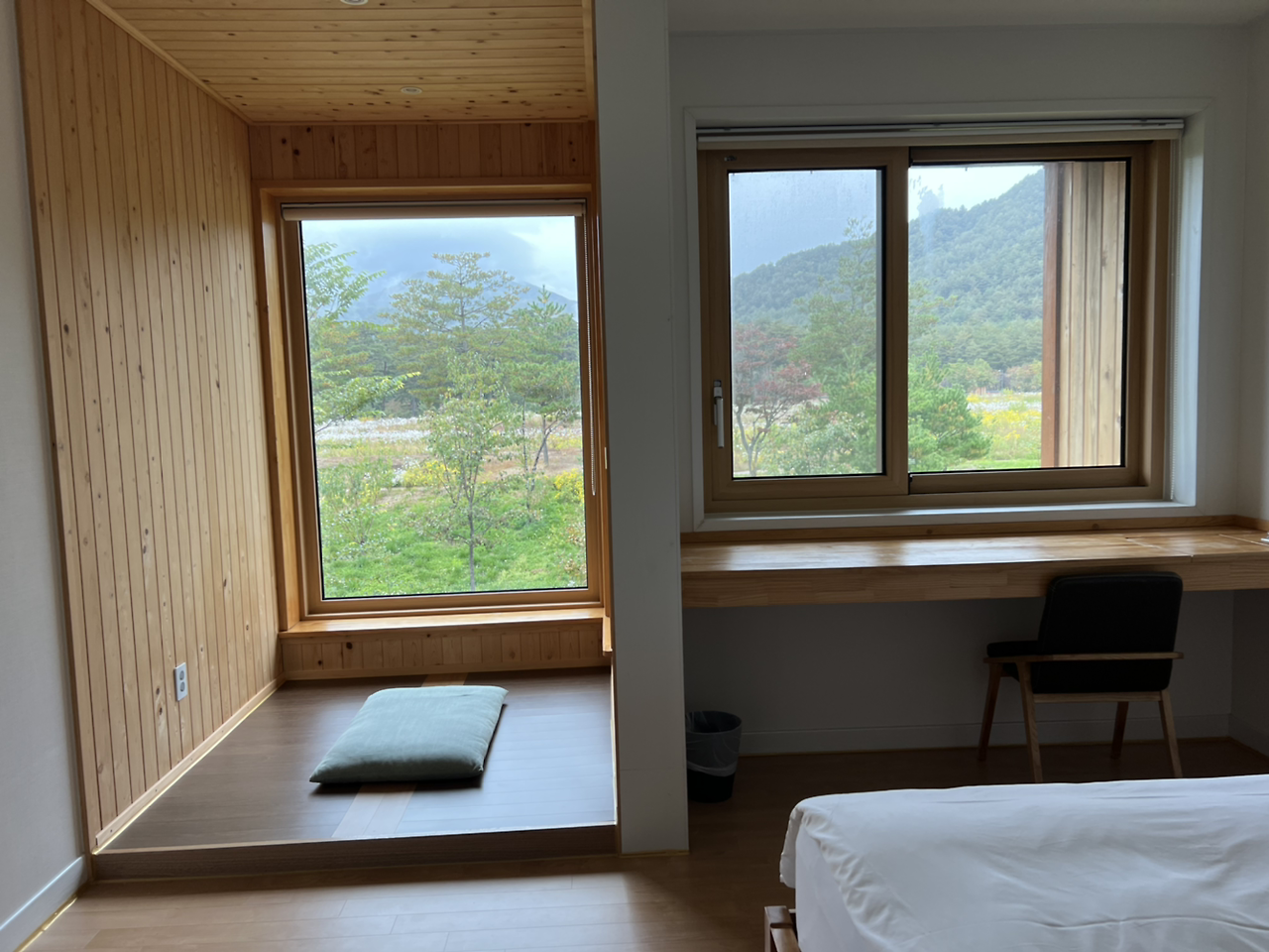 무엇보다 친환경 목재들로 이루어져 방에 들어선 순간 숲 냄새가 나는 것도 참 고마웠다 (나중에 나이 들어 집 짓게 되면 꼭 나무 냄새나는 진짜 나무로 해야지)