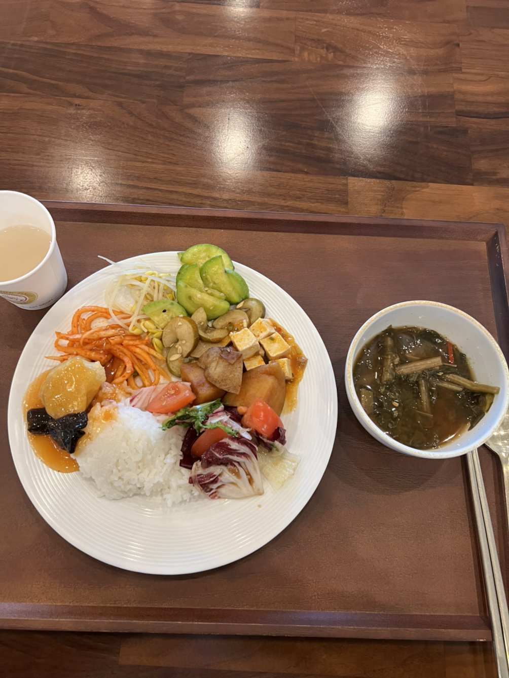 이곳은 스님들이 같이 생활을 하셔서 건강한 채식 식단이다. 버섯 탕수육도 참 맛있다. 채식만으로도 살 수는 있을 것 같다는 생각. 자극적이고 맵고 짜고 단거 좋아했었는데 나이가 들면서 입맛이 심심하고 담백한 게 좋아지는 걸 보면 참 신기하다. 장조림도 어묵인지 콩고인지 고기를 대체하는 식재료들이 많이 등장한다.