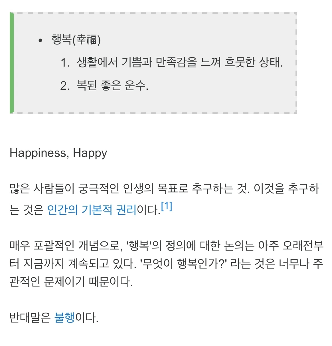 행복이 무엇인지 알아보고 생각해보고 싶어졌다. 그 사전적 의미인 즉슨,