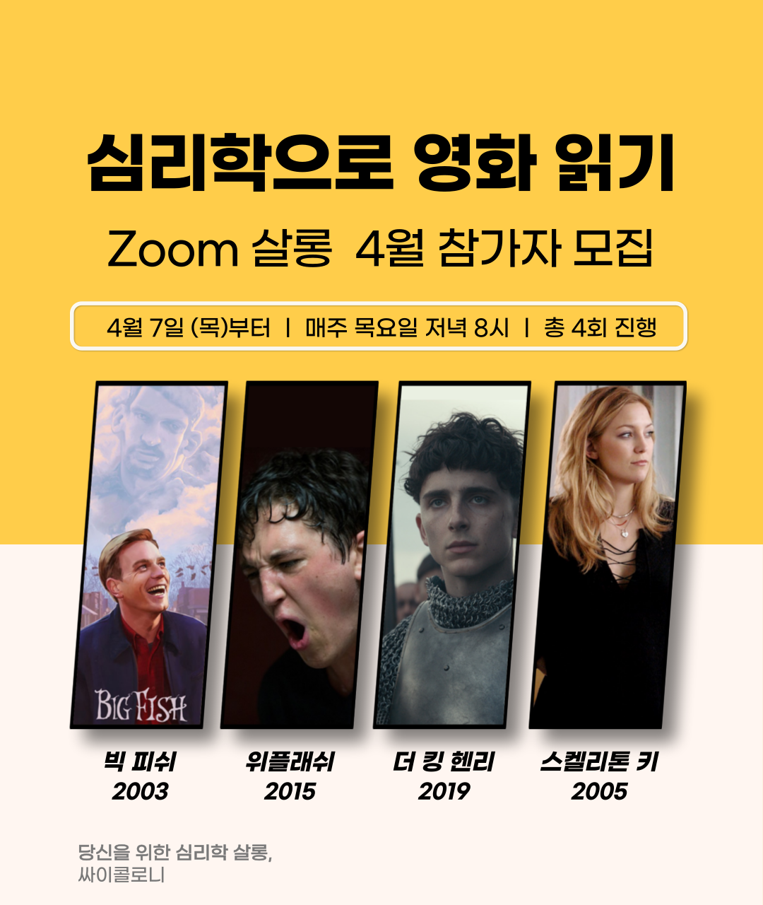 ※ 진행자 알케믹은? ㅡ 15년 간 경력을 쌓아 온 심리상담가입니다. 심리학 교양 서적 멘탈리스트 마음을 해킹하다(2010), 심리해부 토크쇼 살려는 드릴게(2015)를 출간했습니다. 심리학으로 영화를 풀이하는 팟캐스트 진행을 비롯, 매월 1회씩 진행됐던 영화 모임 '무비 임팩트'를 3년 간 리딩하기도 했습니다.