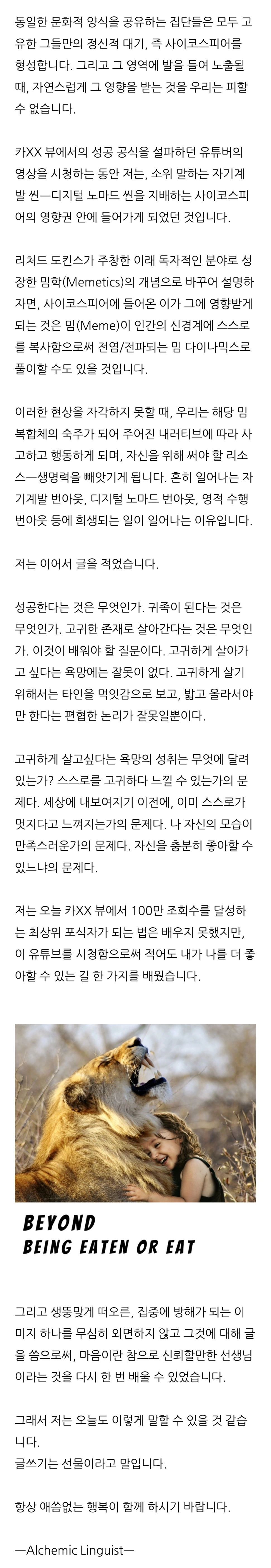 P.S. 위 작업에서 제가 사용했던 글쓰기 방법론은 현재, '자기를 회복하는 글쓰기'라는 이름의 강좌에 담아 전달하고 있습니다. 8월 15일 월요일 저녁에 다시 한 번 무료특강으로 진행할 예정입니다. 다음 글에서 안내드리도록 하겠습니다.