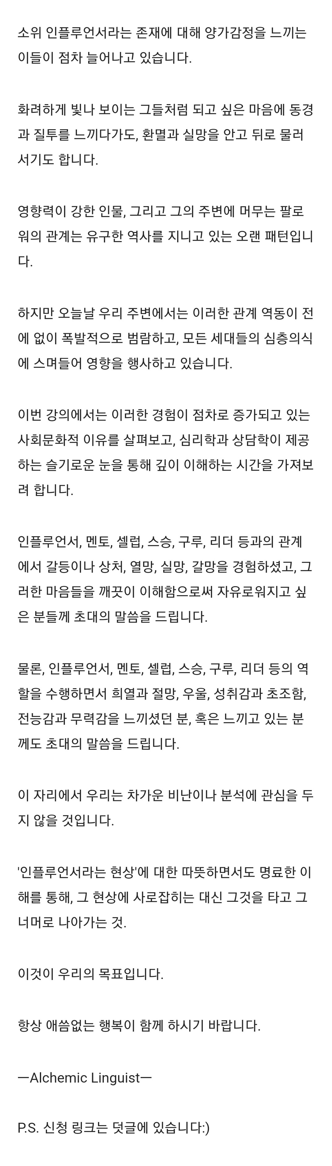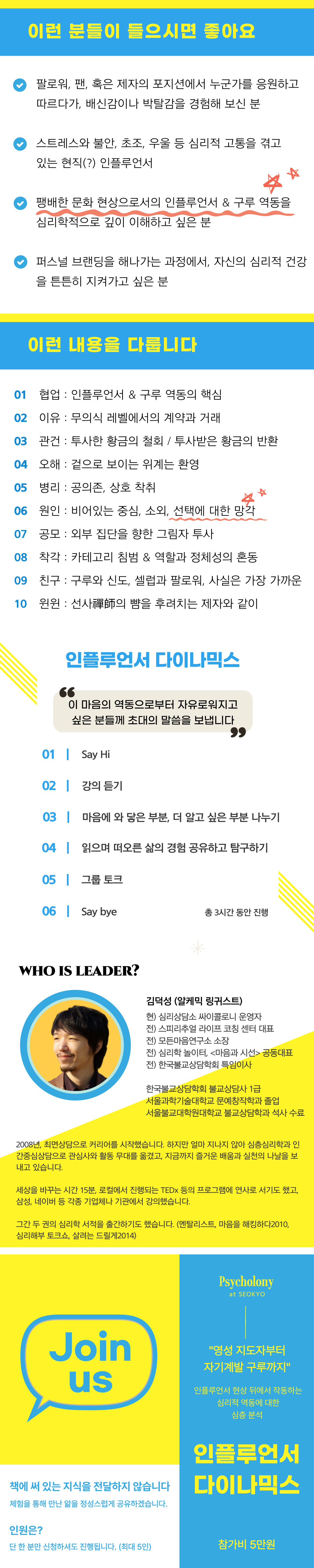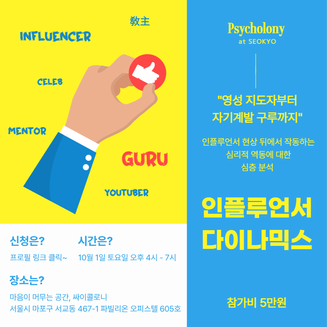 특강 : 인플루언서 현상 배후의 심층심리(10.1.土)