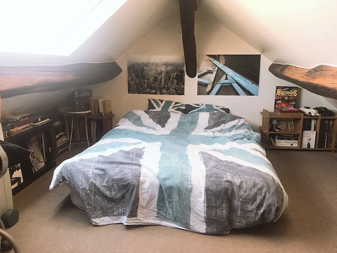 아저씨네 집에서 사용했던 방, 창으로 파리의 하늘이 펼쳐졌다. 근데 프랑스인데 왜 영국국기를..