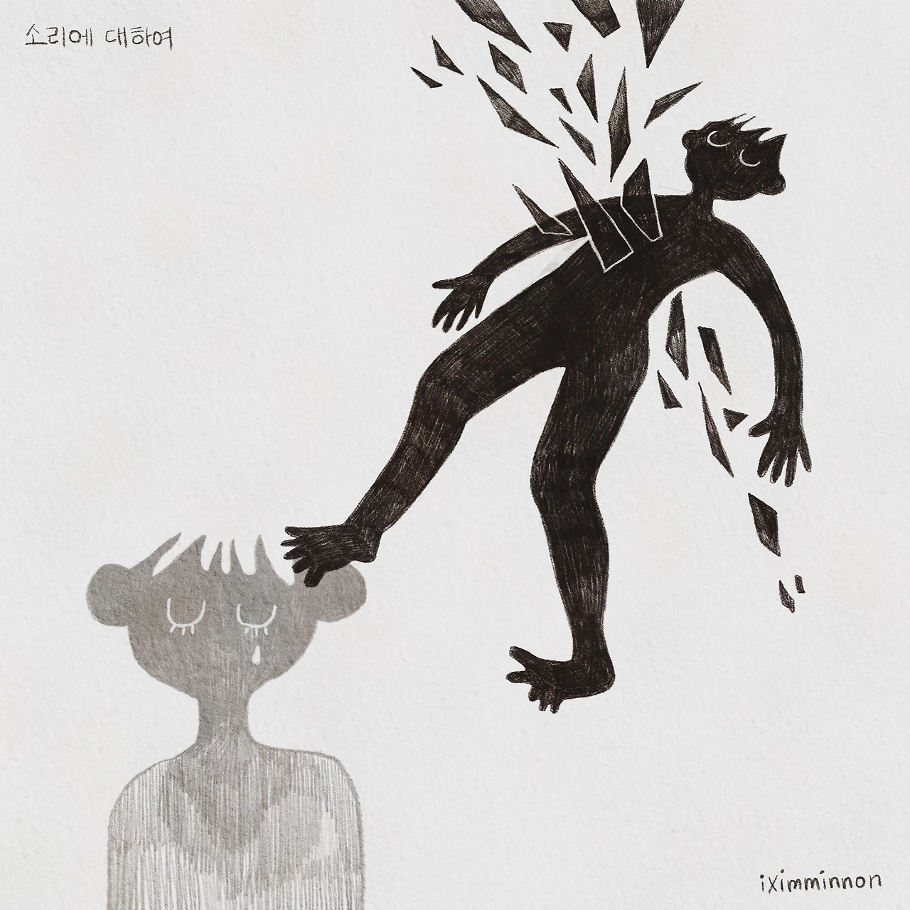 오늘에서야 조용해져서 미안해. 소리가 흘리는 눈물에서는 그런 소리가 났다. 아니면 유리 파편처럼 날카로운 소리였나 싶기도 하다. 소리 대신 남은 그 소리가 귓가에 남아서 귓바퀴를 자꾸 찌르고 있다. 소리 없이 남은 소리들이 마음에 남아서 빙빙 돌면서 내장을 긁고 있다. 이제야 말해보는 건데, 실은 처음 만났던 날, 실은 그때 이미 소리에게 사랑을 느끼고 있었다. 나와 다른 소리에게, 나와 다르게 자기의 소리를 잘 내는 소리는, 그러면서도 다른 사람의 소리를 들을 수 있는 소리를, 나와 다르게 활달하고 밝은 소리가, 사람들과 섞여서 큰 소리로 웃을 수 있는 소리에게 가까이 가고 싶었다. 이것도 이제야 말해보는 건데, 실은 그날 소리가 나에게 뭘 물었는지 알고 있었다. 넌 나에 대해 어떻게 생각해? 난 어떤 사람인 것 같아? 나는 말없이 맥주를 꿀꺽 삼켰었다, 눈만 동그랗게 뜨고. 역시 이제야 말해보는 건데, 내가 소리를 사랑한다는 것을 들킬까 봐 맥주만 삼켰다. 소리가 없어지고 나서야 말해보는 건데, 나는 소리를 많이 사랑했다. 소리 대신 남은 소리들을 머금고 이제야 떠들어 보는 건데, 나도 소리에게 사랑한다고 말해주고 싶었다. 더 이상 소리 낼 수 없는 소리가 되었지만. 소리에겐 남지 않고 내게 남은 사랑의 소리들이 쨍그랑, 쨍그랑, 쨍그랑 내장을 긁는다. 조용히 내장이 긁히는 소리를 듣는다. 소리 대신.