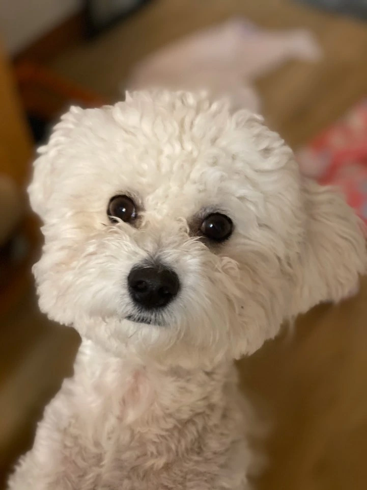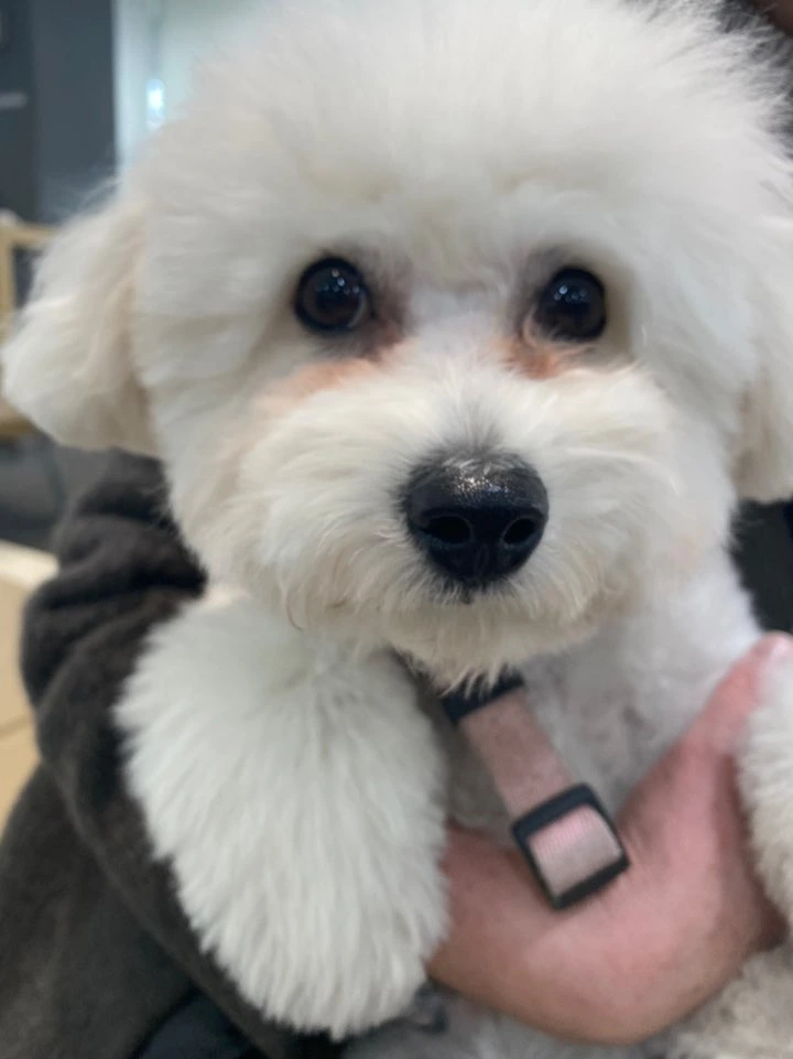 아지는 눈물 알레르기가 있어서 피부와 관련된 사료를 먹지 않으면 눈 주위가 갈색으로 물든다.