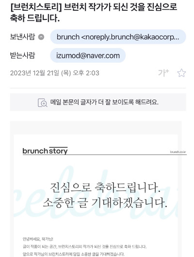그리고 다시 브런치를 지원할 때의 초심으로 돌아와 생각했다.