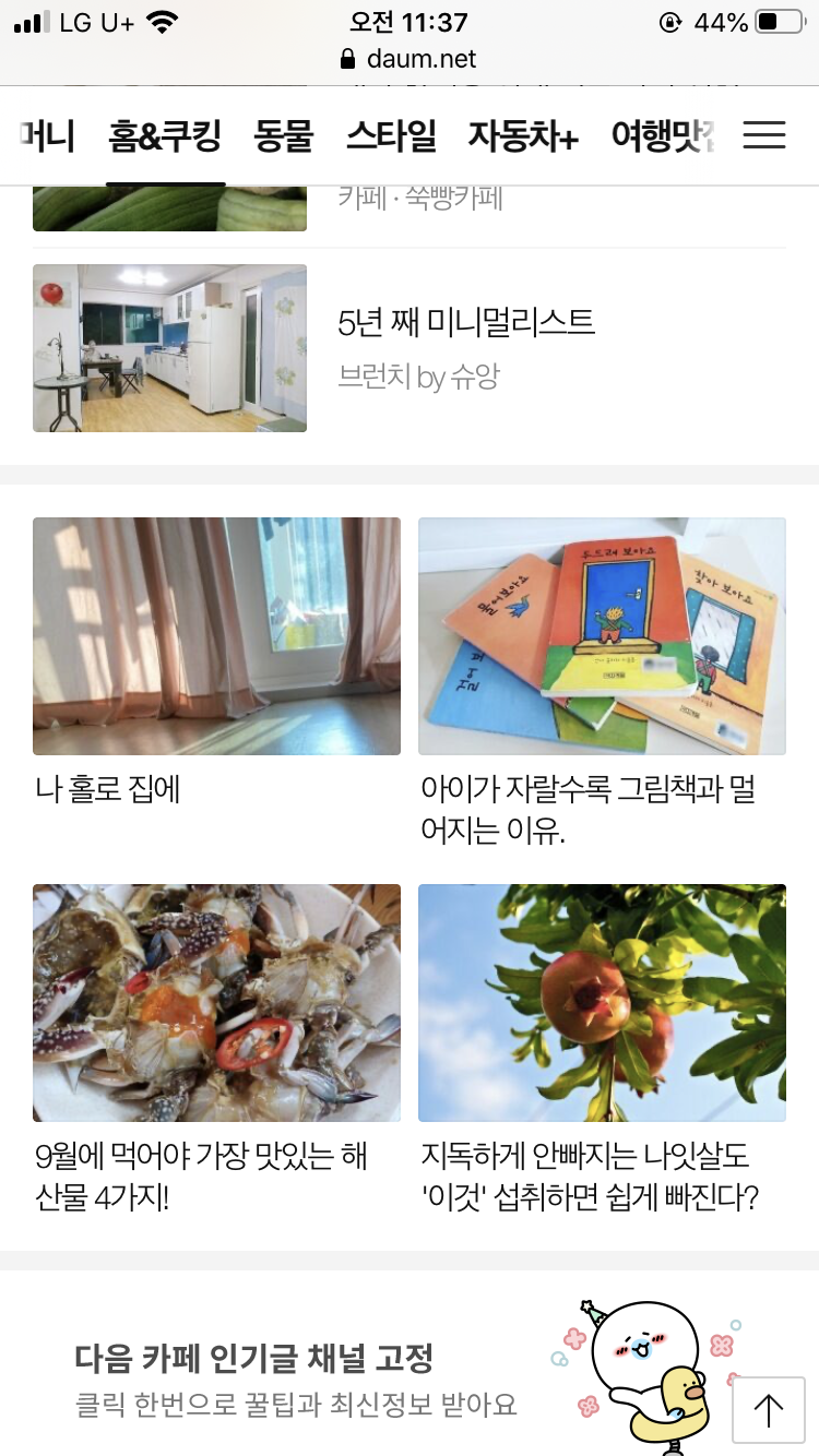 두달 전 나의 글 '엄마와 옥수수'에 이어 어제 업로드한 '나 홀로 집에' 가 또 다시 다음 홈&쿠킹 탭을 장식했다.