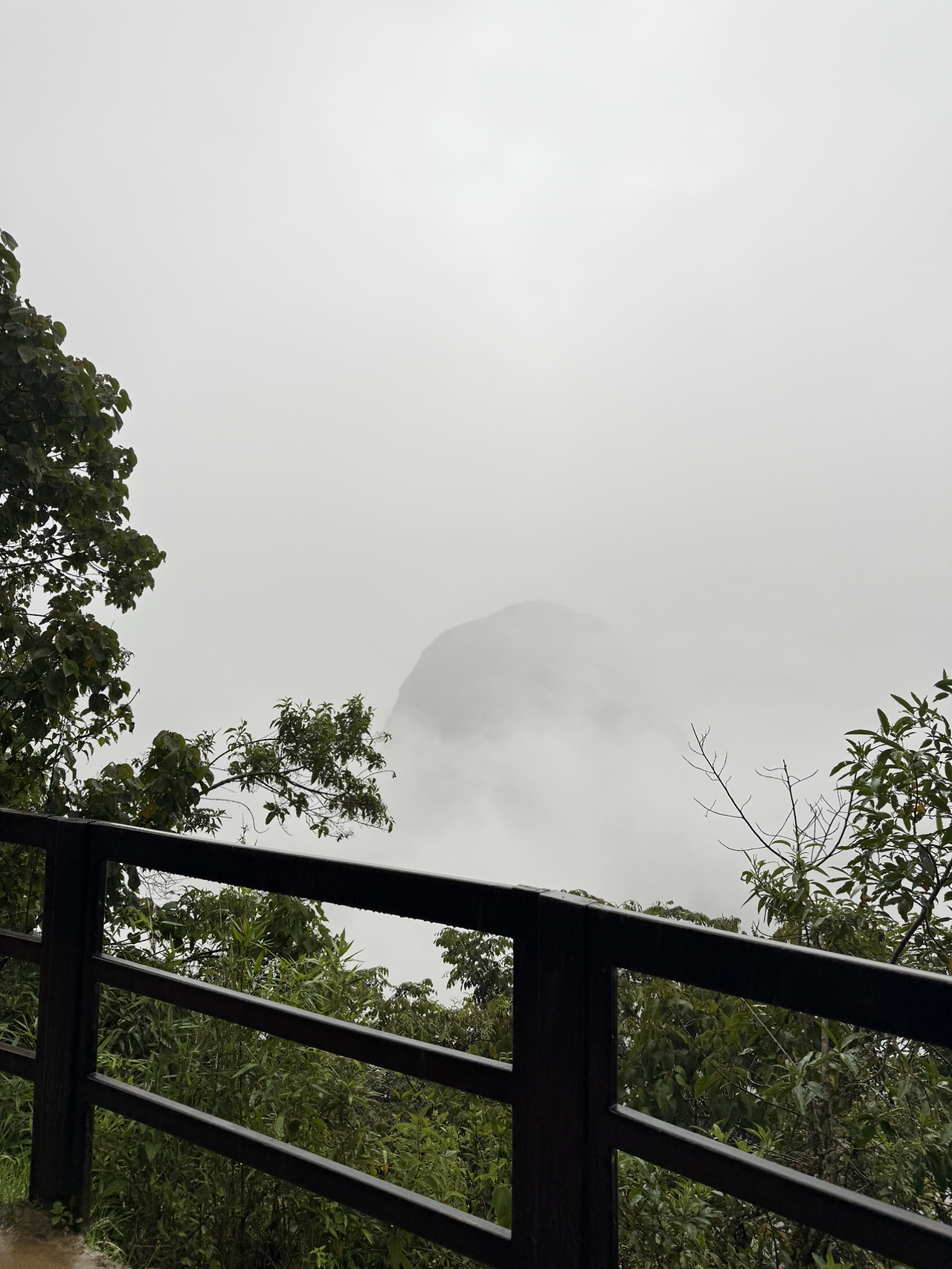 나의 염원이 무색하게 입구에 도착하니 우비를 입지 않고는 돌아다니기 어려울 정도로 비가 내리기 시작했다. 입구에 지나 조금 걸어도 여전히 안개 속이었다.
