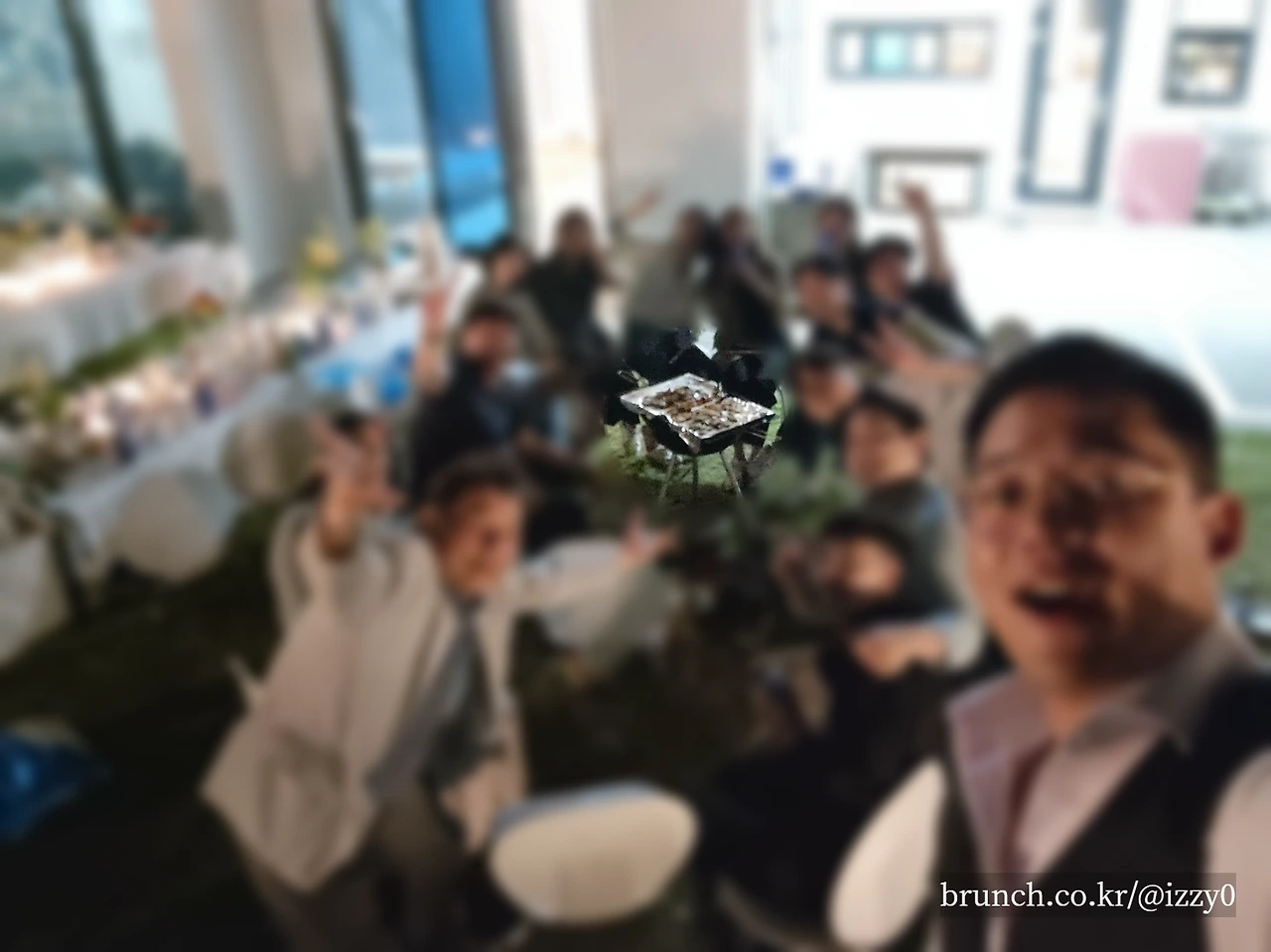 결혼식에서 가장 인상 깊었던 순간을 꼽으라면 내 친구들과 몽생이 친구들이 함께 어울렸던 이때가 아닐까 싶을 정도로 나와 몽생이에게는 뜻깊은 시간이었다. 다소 어색할 수 있었던 자리였음에도 MC 역할을 자처해 주었던 까치 언니오빠들 덕에 모두가 행복한 추억을 한 아름 얻어갔다.