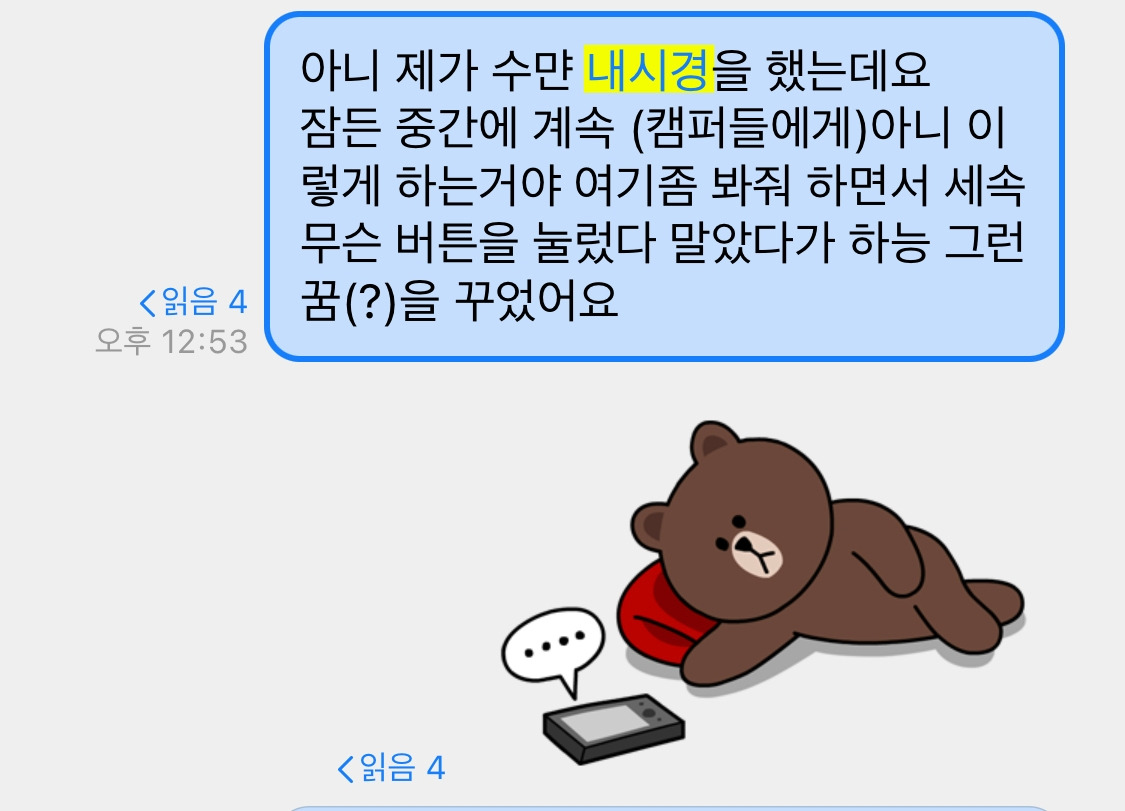 무의식 중에도 캠퍼 걱정뿐이라니(뻔뻔)