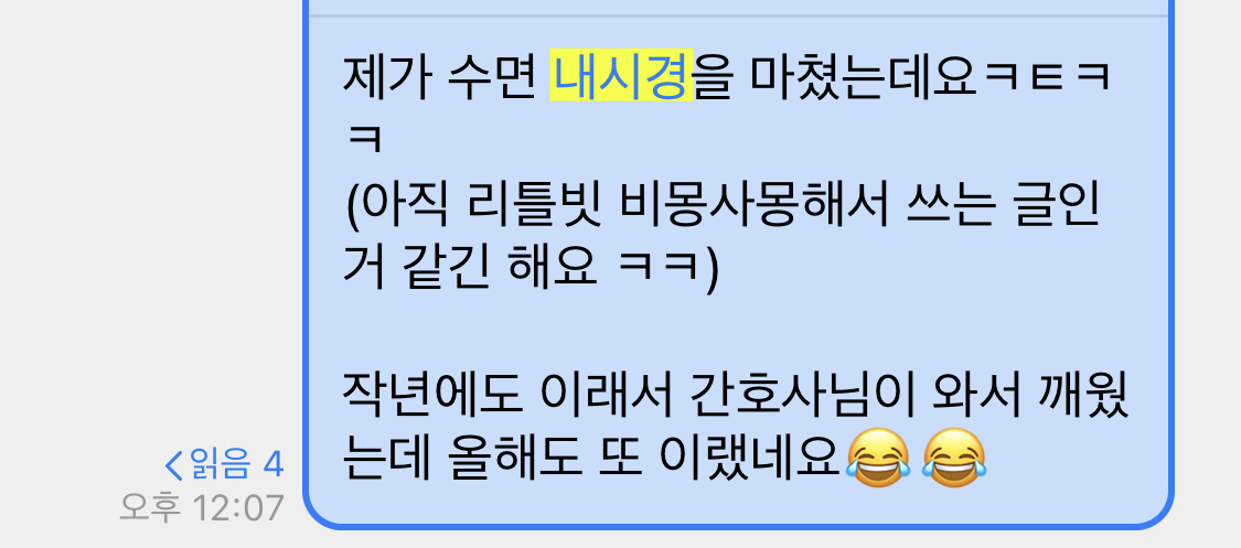 똑같은 경험을 2022년에도, 그리고 2023년에도 했다. 그리고 매번 비몽사몽 한 채로 팀 메신저 방에 그 글을 남겨둔다 ㅋㅋㅋ 올해도 똑같은 꿈을 꾸고 어찌나 웃기던지