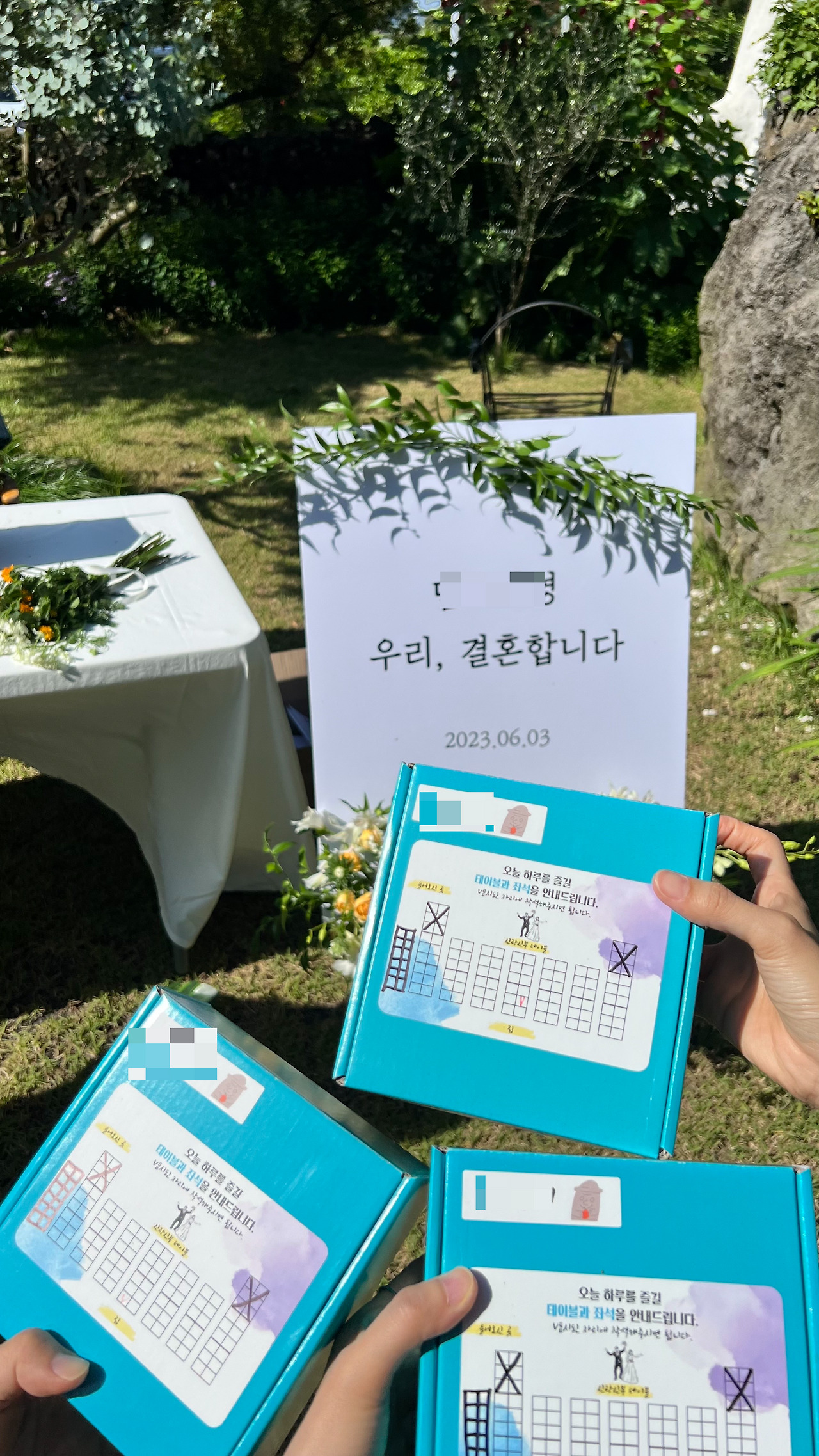 우리의 결혼식 과정을 보며 주변에서 "뭘 그렇게까지 하니"라는 이야기를 듣곤 했다. 그게 참 큰 스트레스였다. 우리도 이렇게까지 하고 싶지는 않았으니까 ㅎㅎ 그런데 이미 결혼식 준비는 시작되었고, 우리가 하지 않으면 이 일을 대신해 줄 수 있는 사람은 아무도 없었다. 오늘의 우리가 하지 않으면 결혼식 당일의 혼란과 혼선을 감당할 수 없다는 생각에 정말 아득바득해낸 일들이었다.