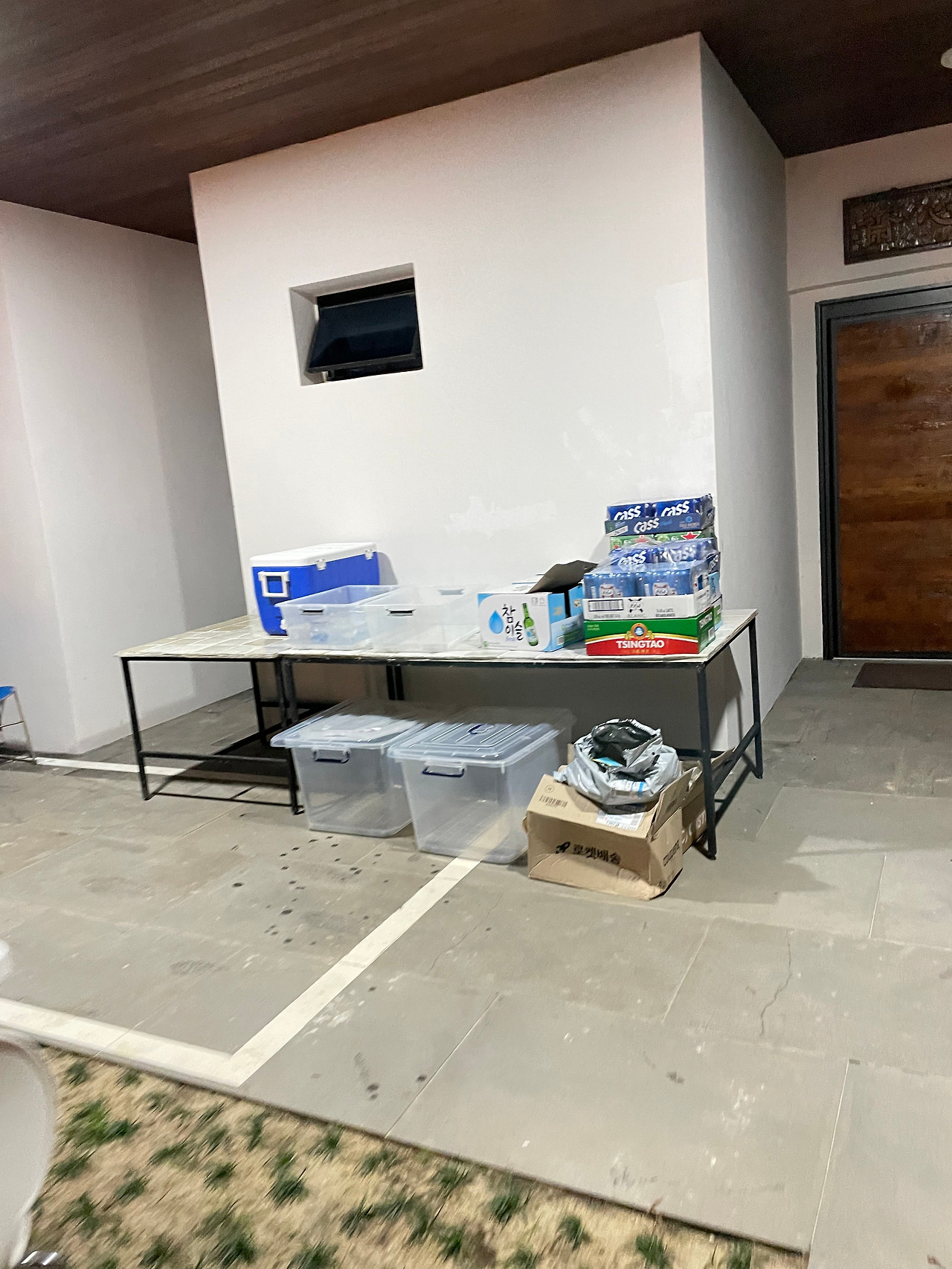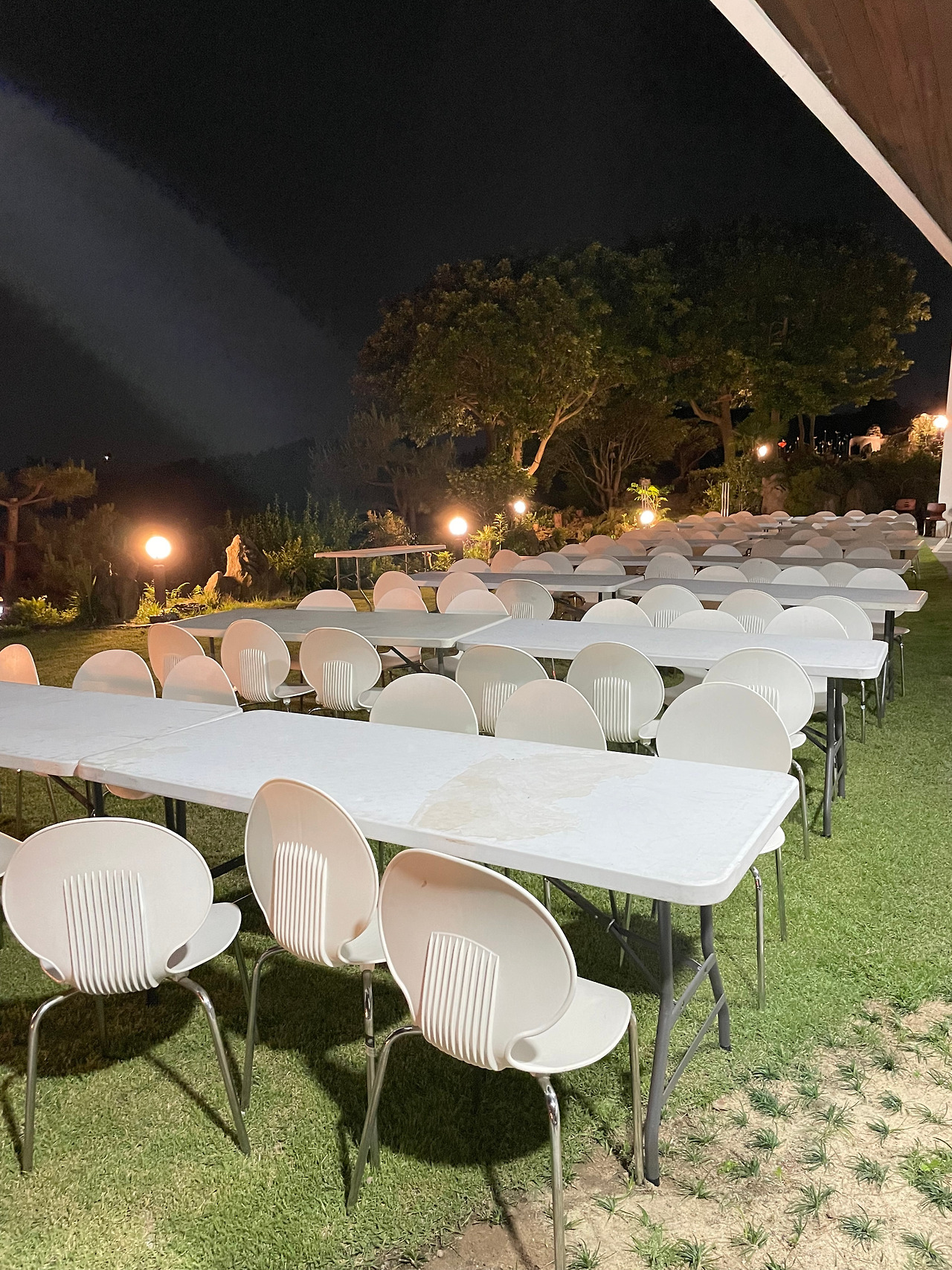 대부라는 곳에서 구매했고, 무광 천으로 테이블당 1500mm * 2550mm으로 제작했다. 사장님이 박음질까지 완벽하게 직접 해주시고, 제주도까지 택배로 일정에 맞춰 보내주셨다. 몽생이 어머님이 세탁하여 가든파티 때마다 잘 사용하고 계신 걸 보면 오염에도 강하고, 빨래해도 깨끗함이 유지되는 아주 좋은 원단이었던 것 같다.