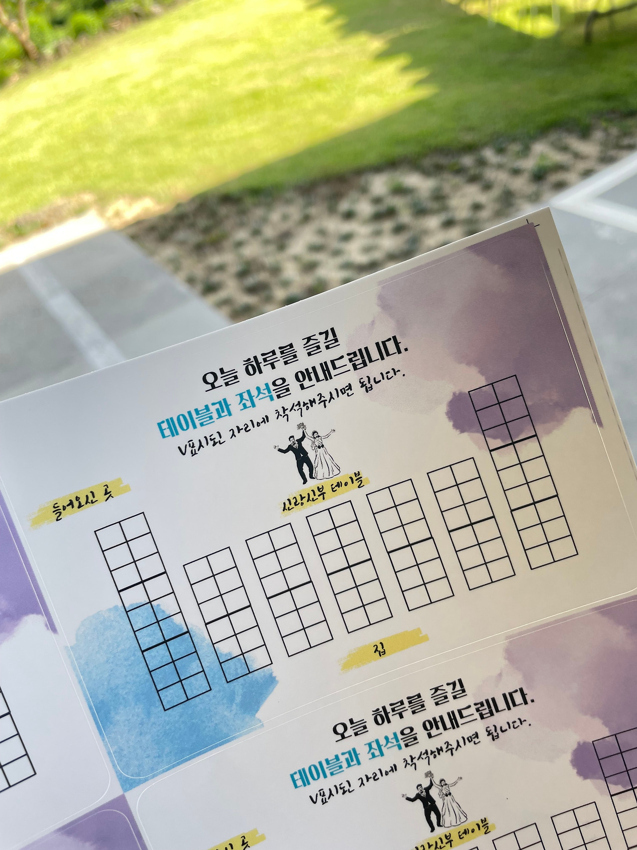 이름스티커와 자리배치 스티커는 모두 내가 직접 만들었다. 그런데 당일 테이블 배치가 변경되면서 밤새 매직으로 다시 그려서 체크했다는 슬픈 전설이.