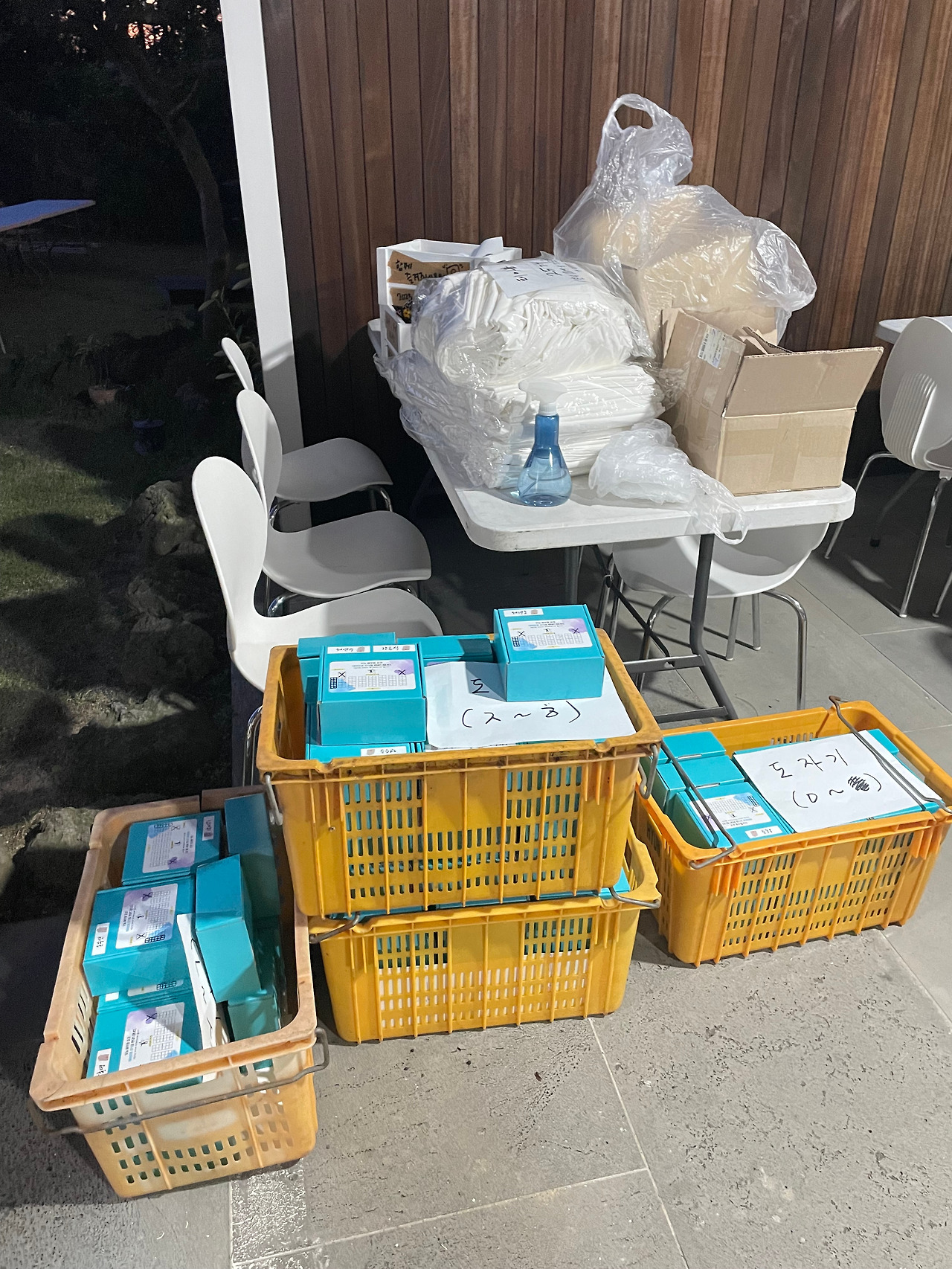 이 수저받침의 원래 용도는 하객에게 자리를 안내해 주기 위함이었다. 그런데 테이블에 두기에는 테이블이 좁아서 어려움이 많았다. 그래서 웰컴존을 활용하여 도자기를 배부하고, 그 도자기 상자 위에 하객의 자리가 안내되도록 해보자는 아이디어를 내었다.