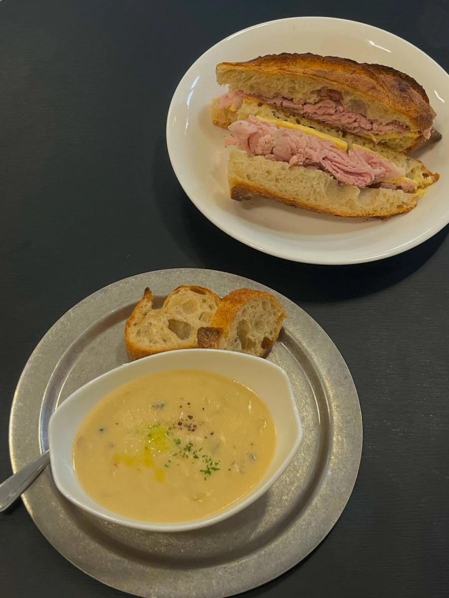 잠봉뵈르 샌드위치랑 스프를 주문했어요