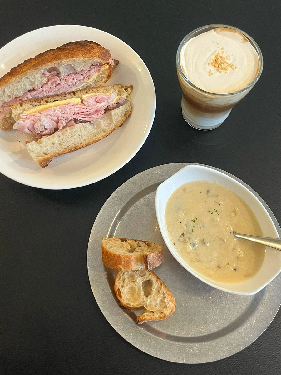 오랜만에 잠봉뵈르 샌드위치에 좋아하는 스프도 먹고