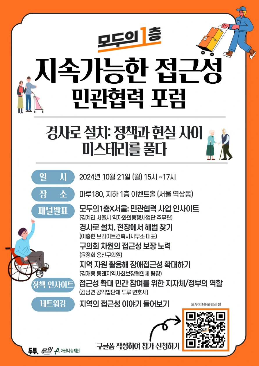 물론 '모두의 1층' 프로젝트를 지지하거나 접근성을 향상하기 위한 포럼이었기에 호의적인 참여자가 많았음은 분명할 테다. 다만 이후 세션까지 마치면서, 그 공간에 있는 모두가 이 프로젝트를 내 것 같이 여긴다고 느꼈다. '모두의 1층'은 누구나 1층을 편하게 누릴 수 있도록 고민한 결과다. 당장 내일에는 내 것이 아니라고 느낄 수도 있지만, 곧 내 것 같다고 여기는 사람이 많아질 때 비로소 내 것이 될 테다.