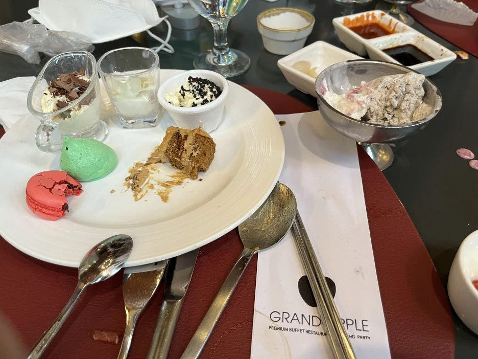 '그랜드 애플'이라는 프리미엄 뷔페를 다녀왔다. 뷔페라는 곳 자체가 일반적인 식당보다 객단가가 높기에 '프리미엄 뷔페'라는 곳이 있는지도 몰랐었다. 친구가 예약한 시간에 맞춰 입장했고, 성인 기준으로 2시간 이용이 가능했다. 한 사람에 65,000원이면 그 공간 안에서 쌓여 있는 음식을 "욕심"껏 집어다가 먹든 버리든 할 수 있었다. 그랬다, 그곳은 물질만능주의 사회의 아주 작은 축소판이었다.