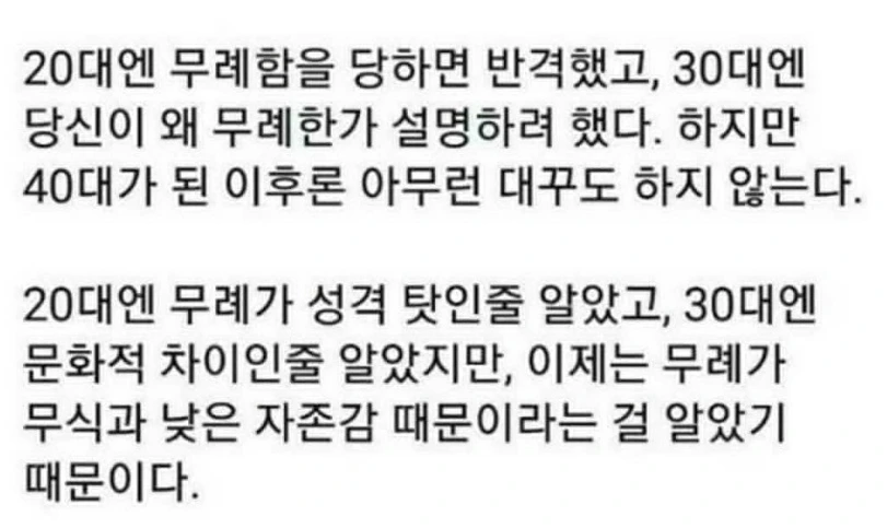 집에 가는 길 내내, 집에 돌아와서도 며칠간은 계속해서 그 일이 생각나며 분이 풀리지 않았다. 그러다 인스타그램에서 마주한 사진 한 장이 나를 위로했다. 계속되는 무례함에 화를 못 참고 반격했고, 그분의 무례에 대해서 설명하려 했다. 무례가 그 사람을 표현했고, 그런 문화에 익숙한 사람이라고 생각했다.