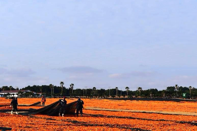 방향에 따라 색과 향이 달리보이는 귤피밭입니다.